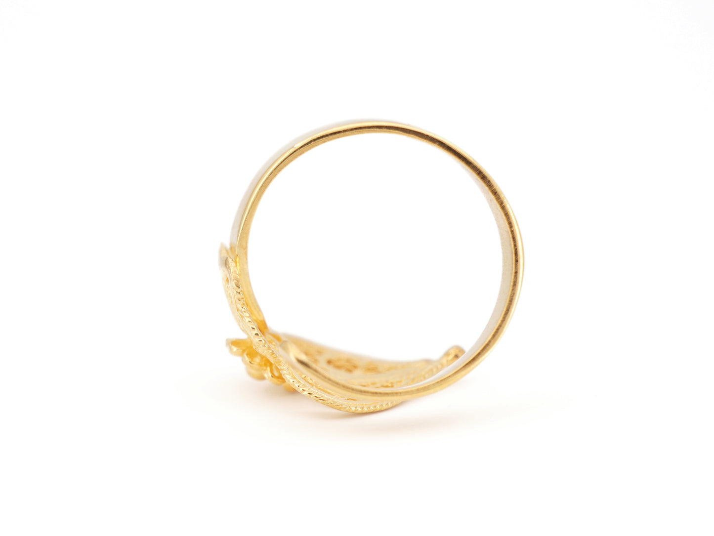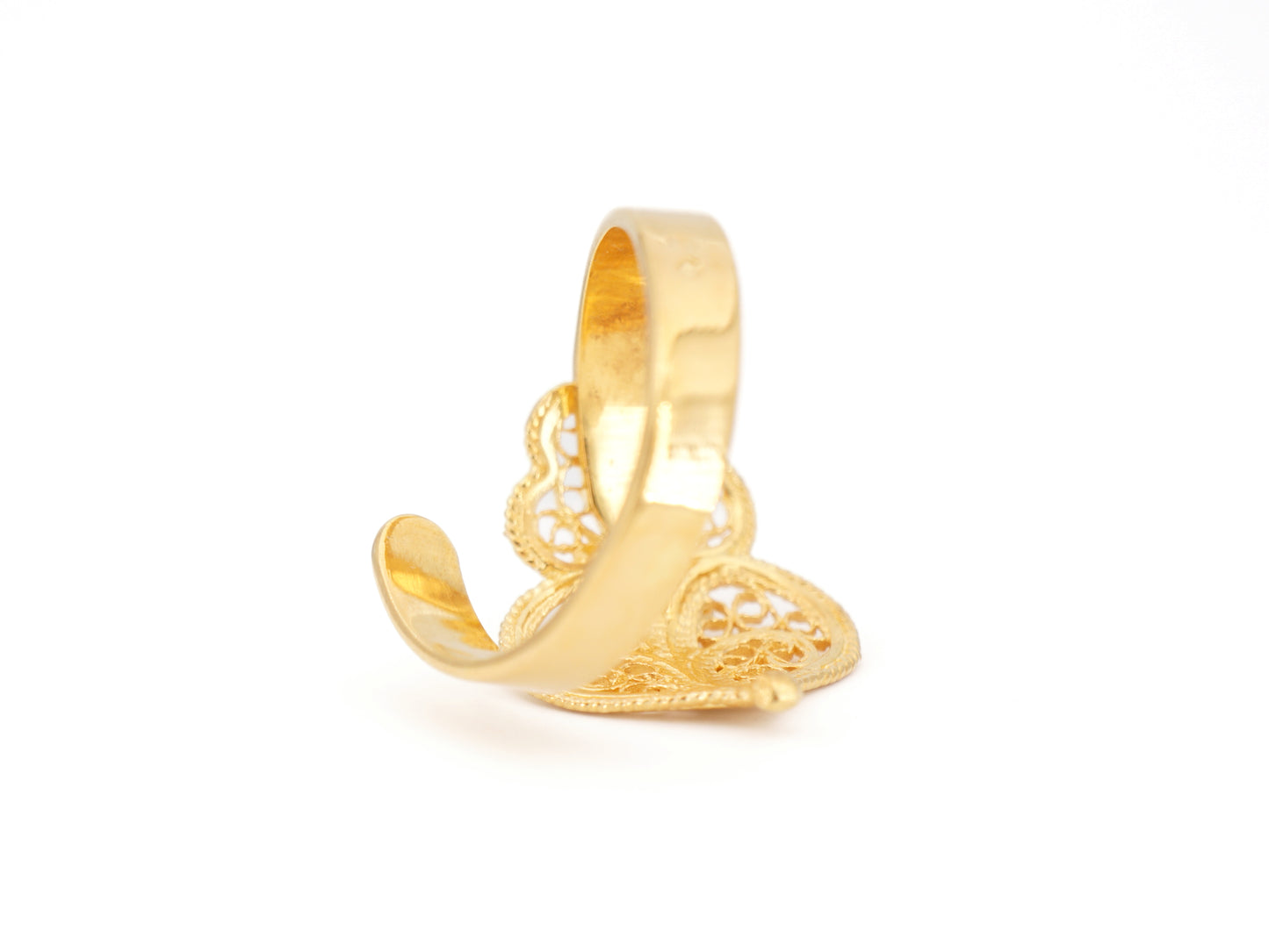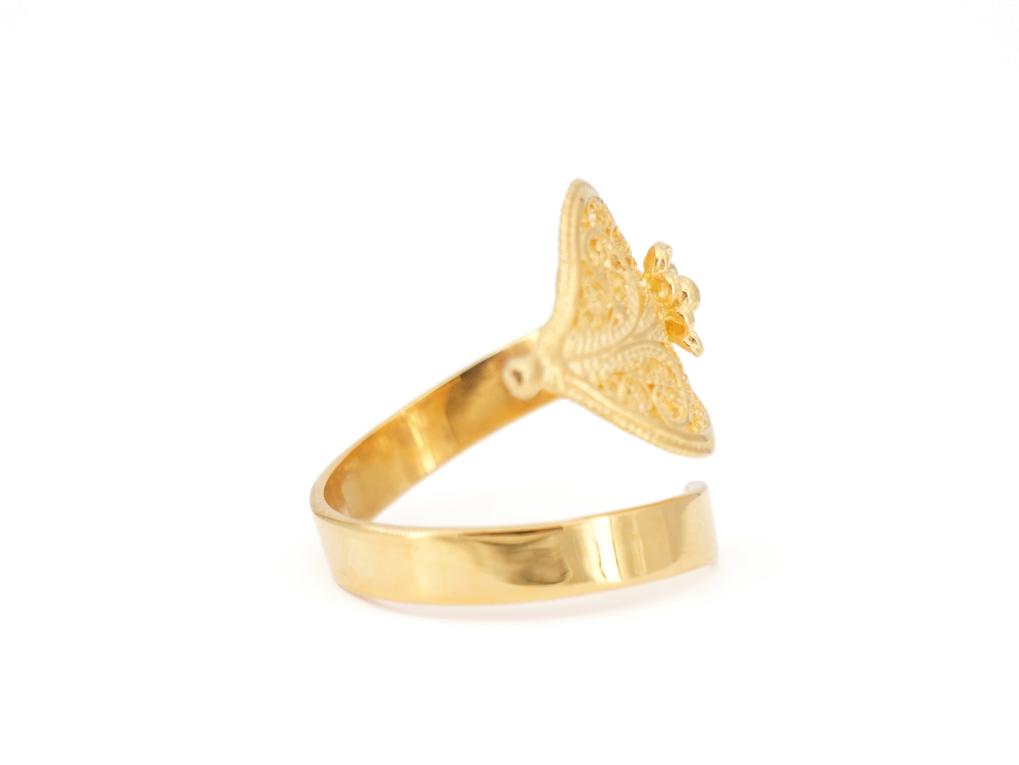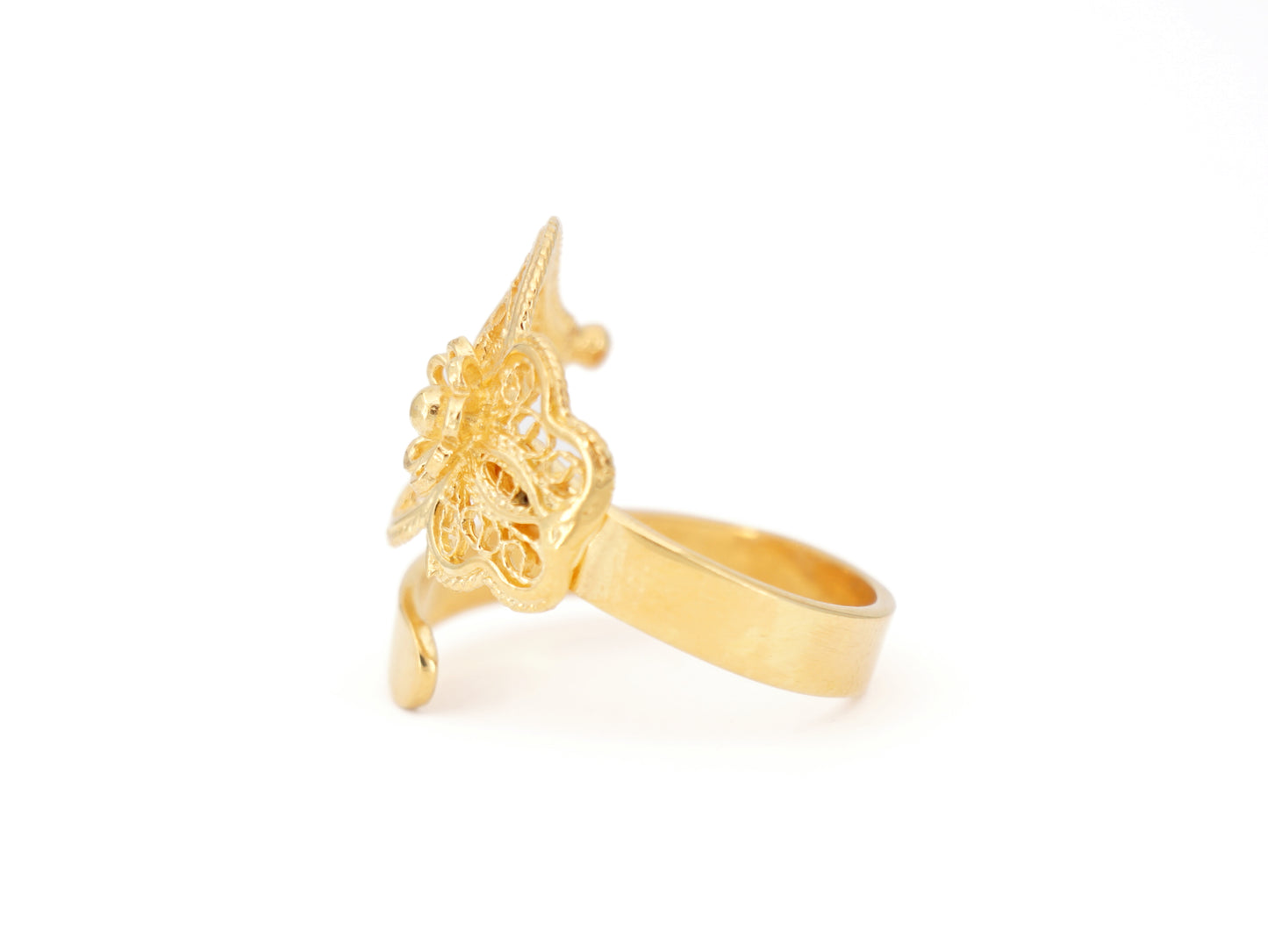 Elegant Small Viana Heart Ring, adjustable in size. Portuguese Filigree, crafted in Portugal in Golden 925 Sterling Silver.
