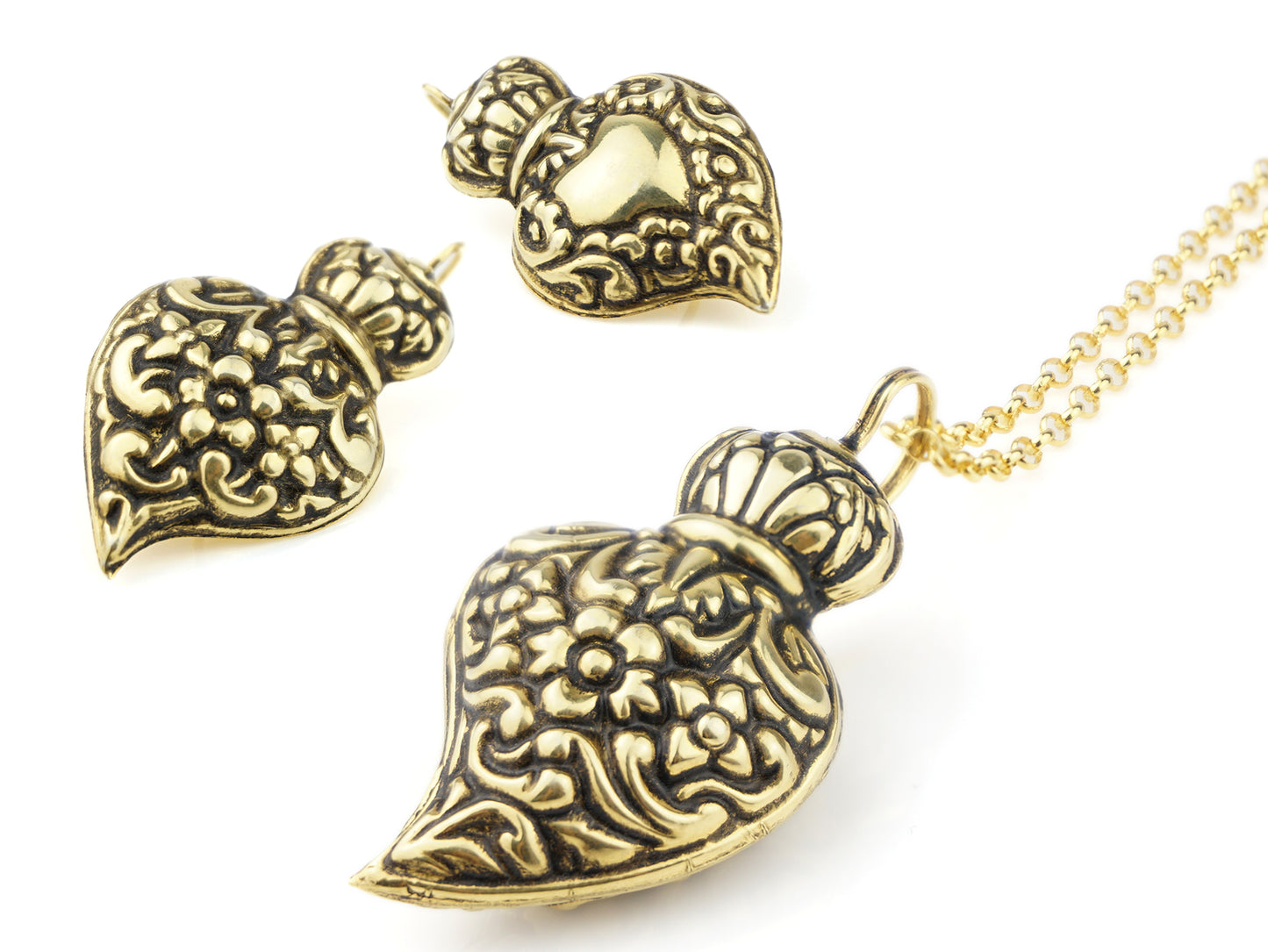 Baroque Jewelry is known for its chunky aesthetic and impressive visual impact, but it is actually surprisingly light. Each piece is entirely molded by hand, using bronze dies that date back to the late 18th and early 19th centuries, using ancestral techniques passed down from generation to generation.