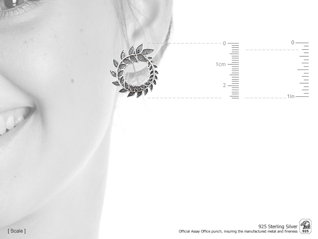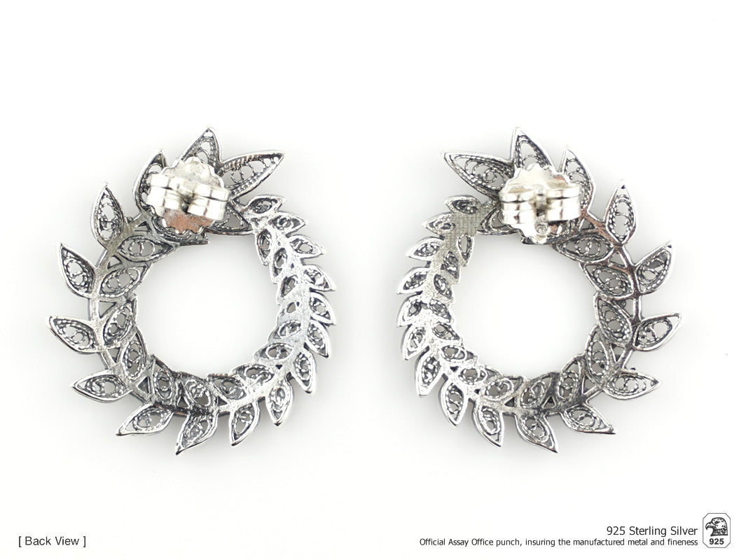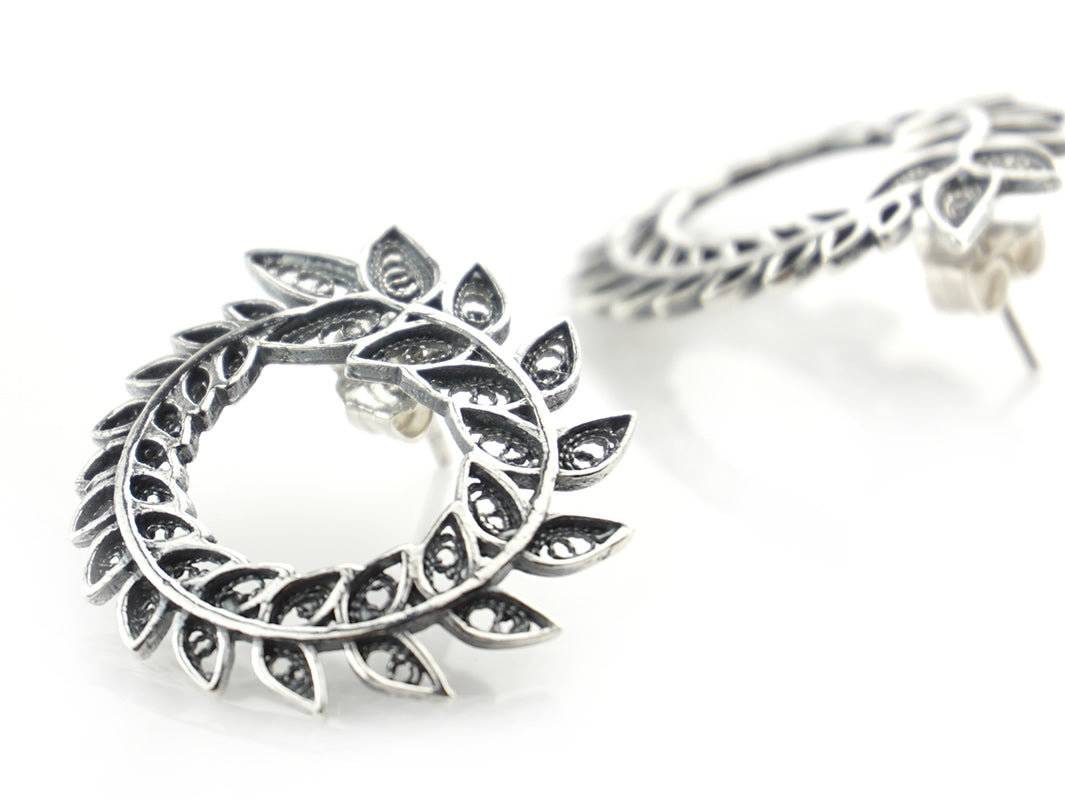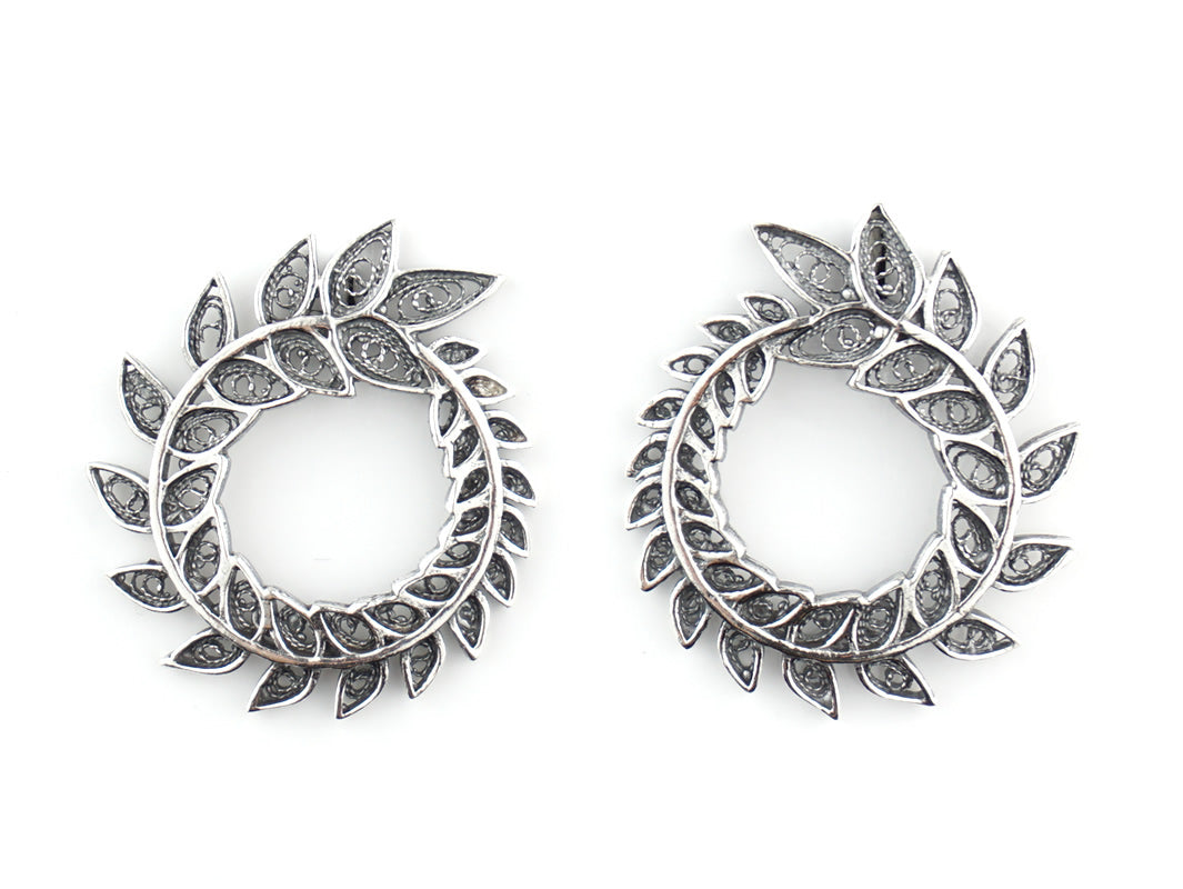 Elegant medium-sized Leaf Wreath pushback Earrings. Portuguese Filigree, crafted in Portugal in 925 Sterling Silver.