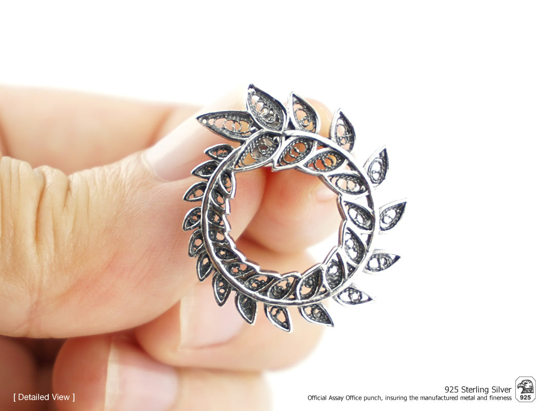 Leaf Wreath Earrings, Portuguese Filigree, 925 Sterling Silver