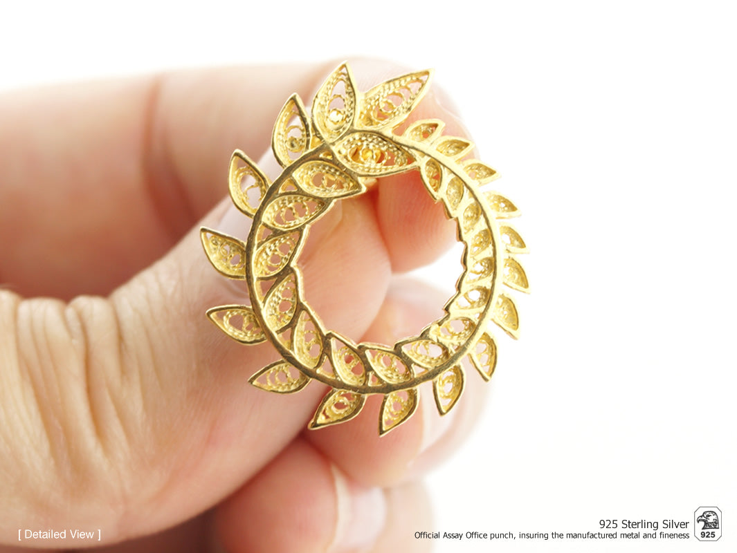 Leaf Wreath Earrings, Portuguese Filigree, Golden 925 Sterling Silver