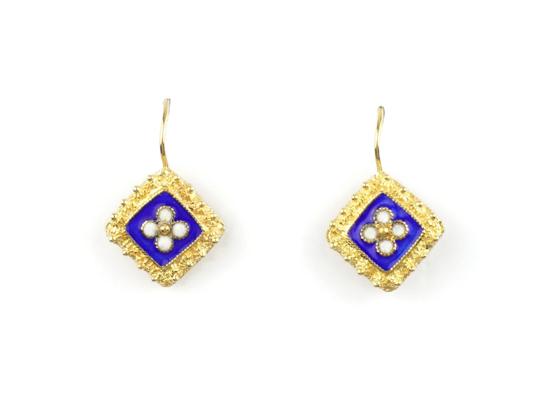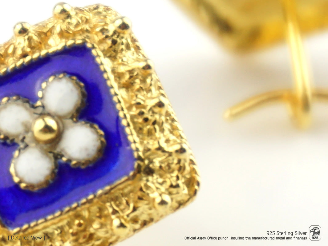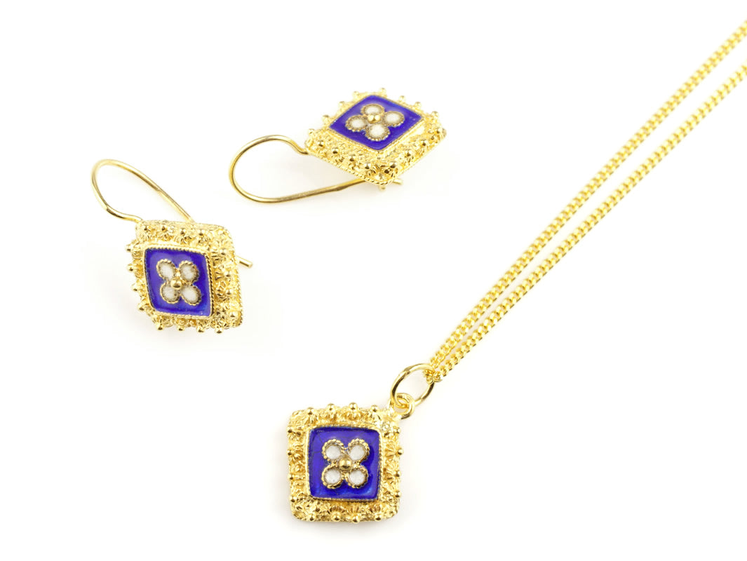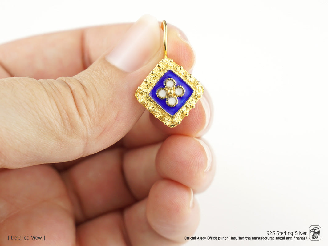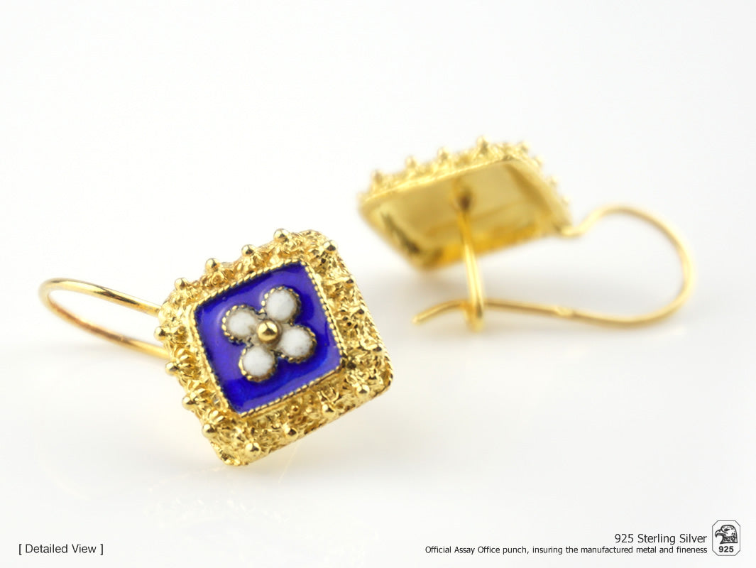 - Model: Square Caramujo Earrings with Blue and White Enamel