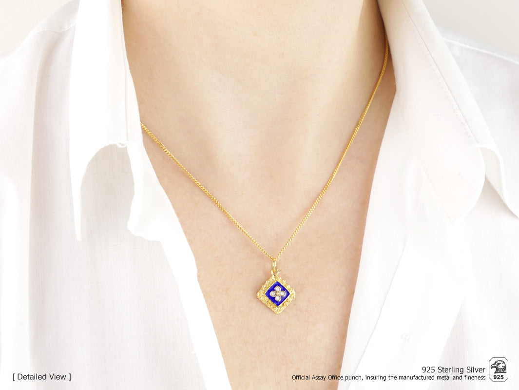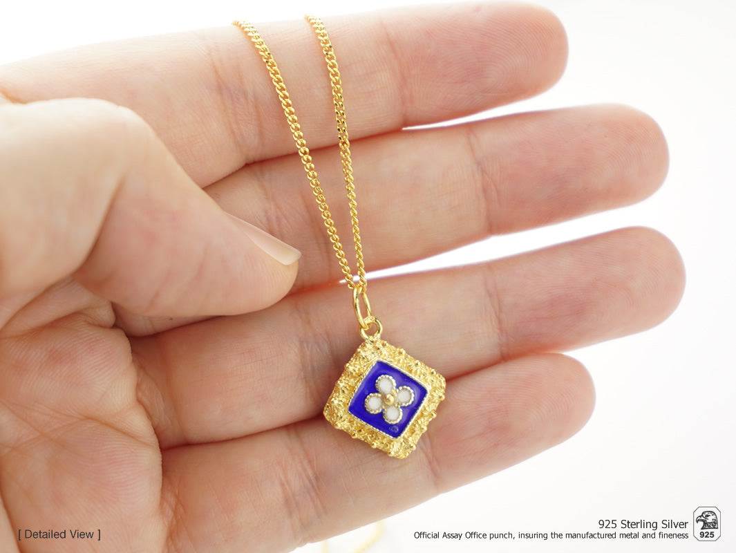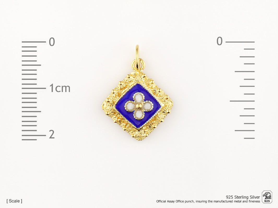 - Model: Square Caramujo Pendant with Blue and White Enamel