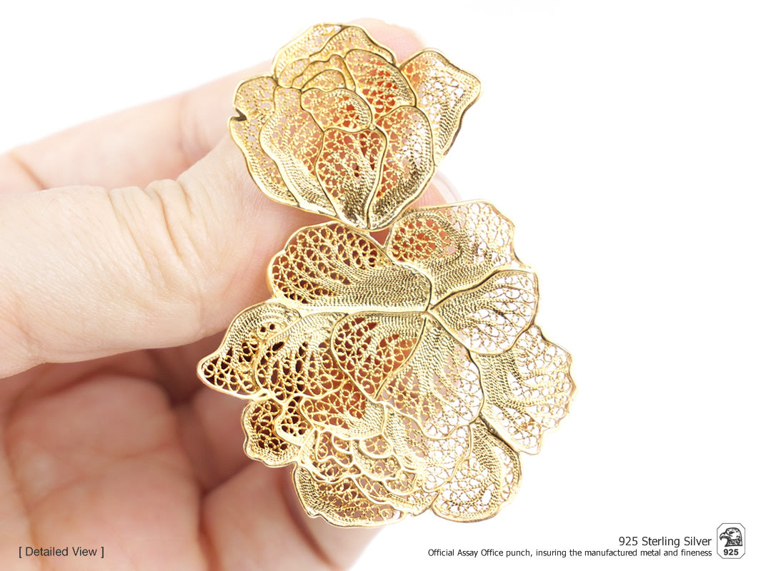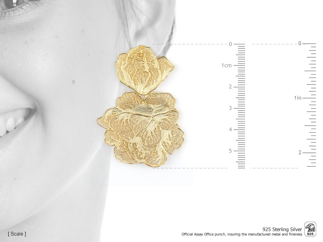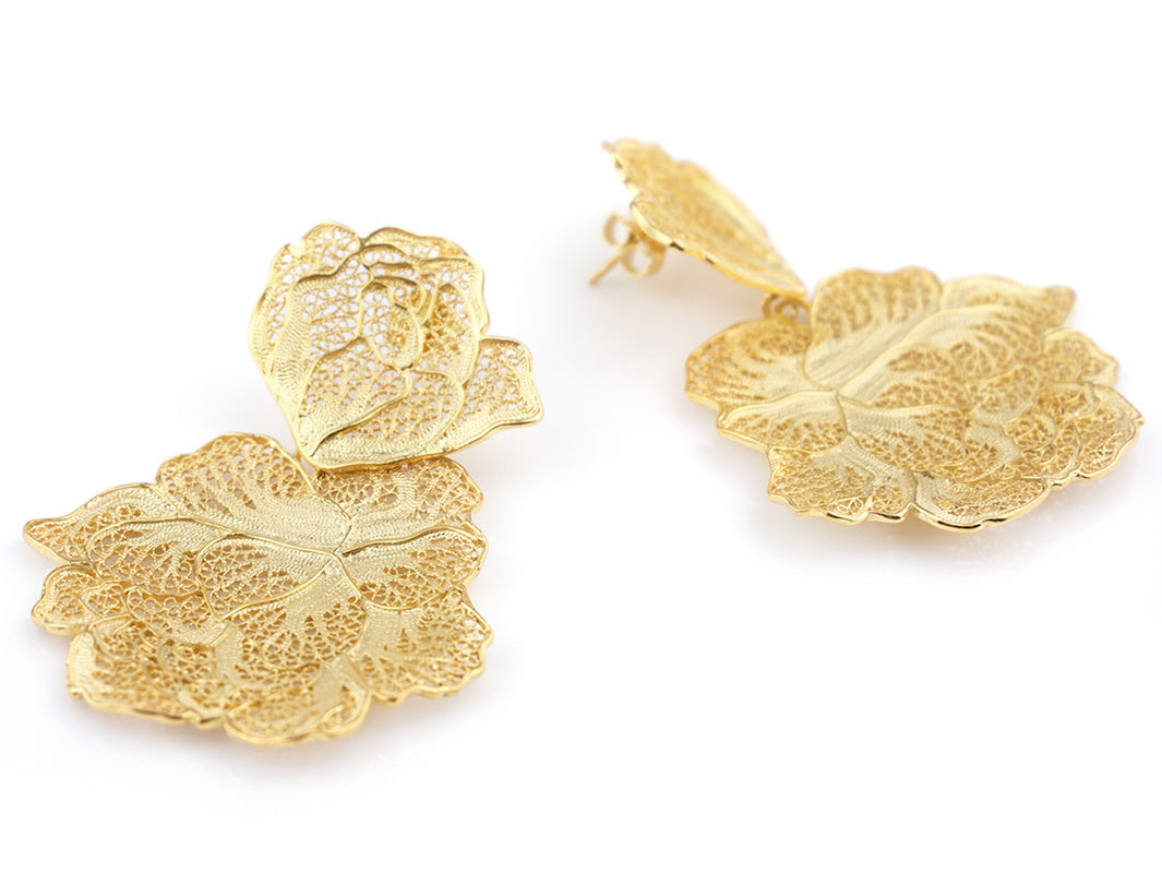 Natura XL Earrings, Portuguese Filigree, Golden 925 Sterling Silver