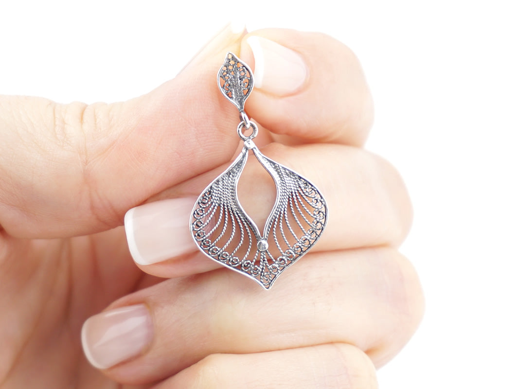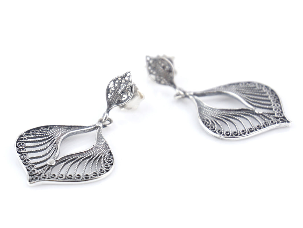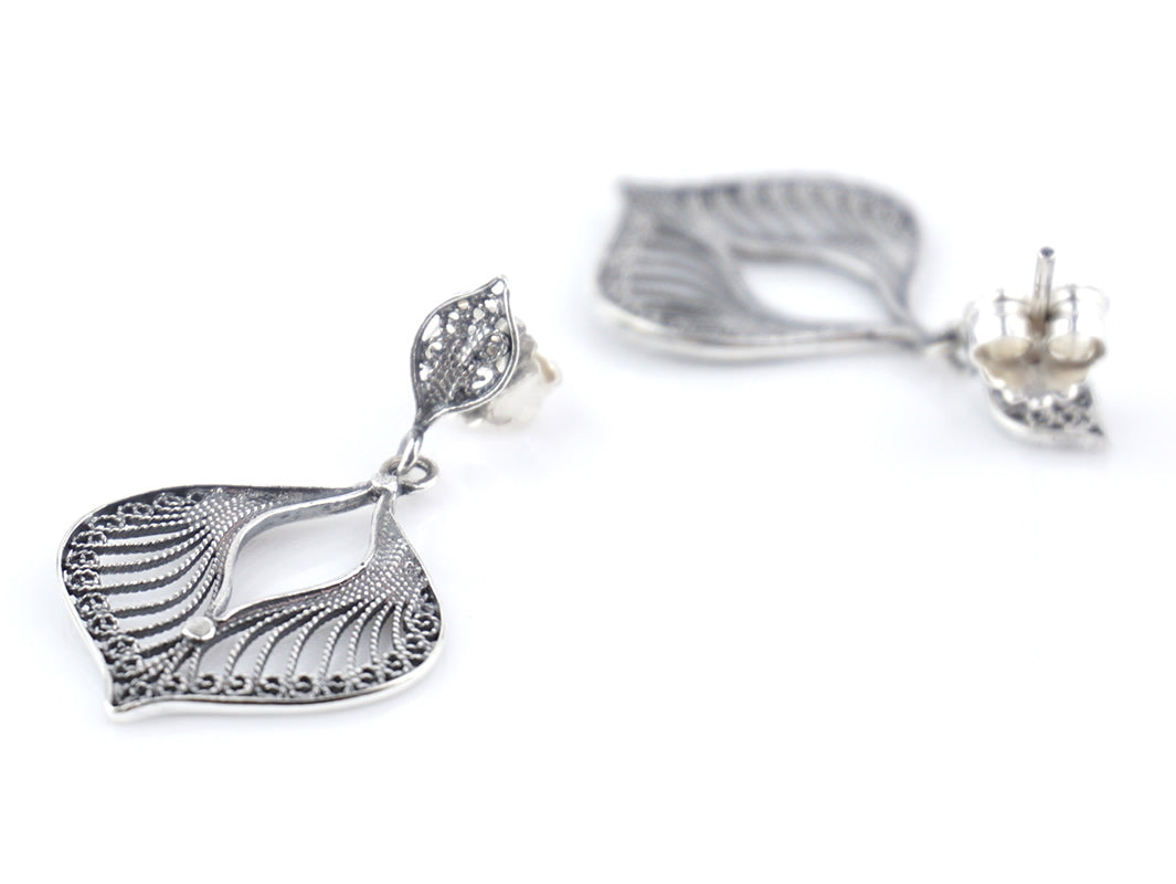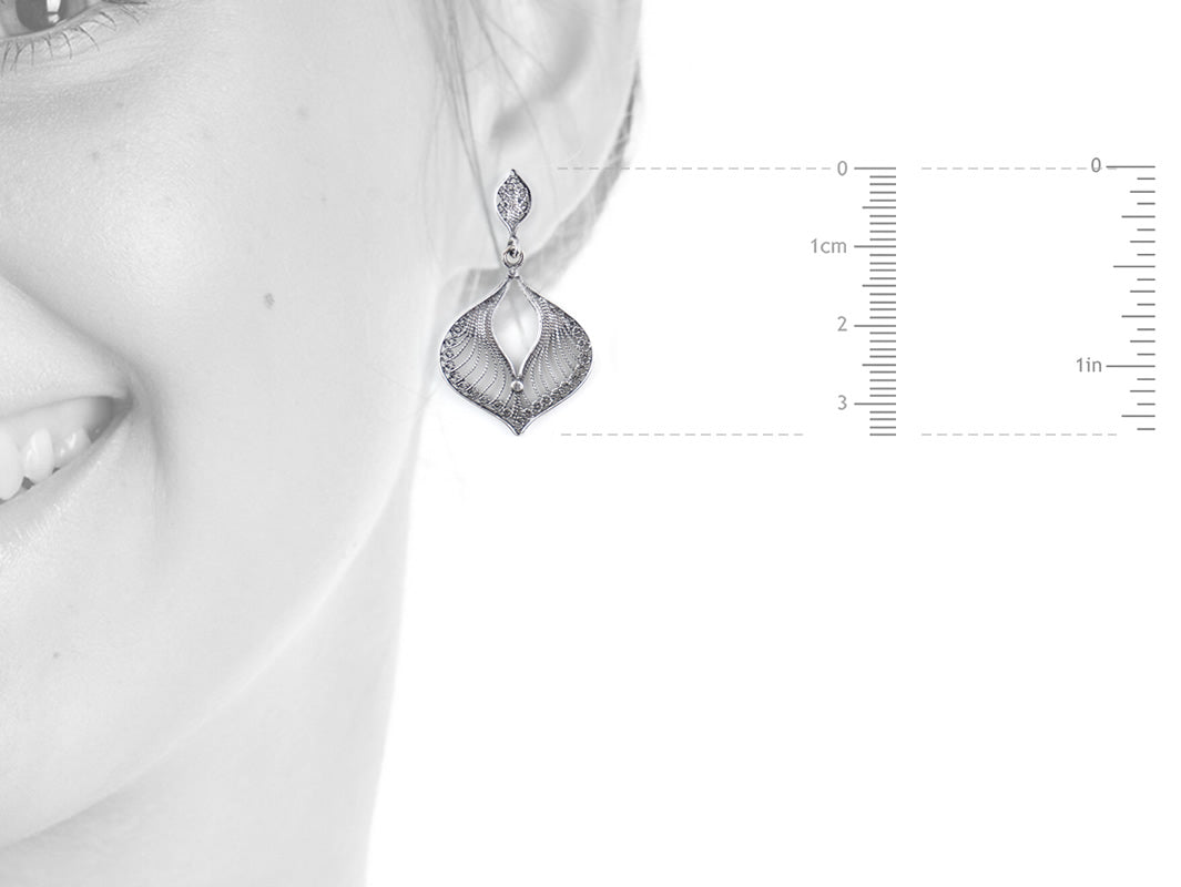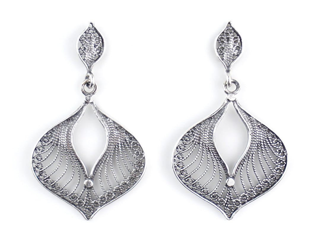 Elegant Wide Teardrop Dangle pushback Earrings, in Portuguese Filigree, crafted in Portugal in 925 Sterling Silver.