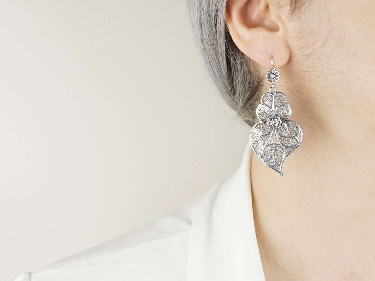 Viana Heart Earrings L Size, Portuguese Filigree, 925 Sterling Silver