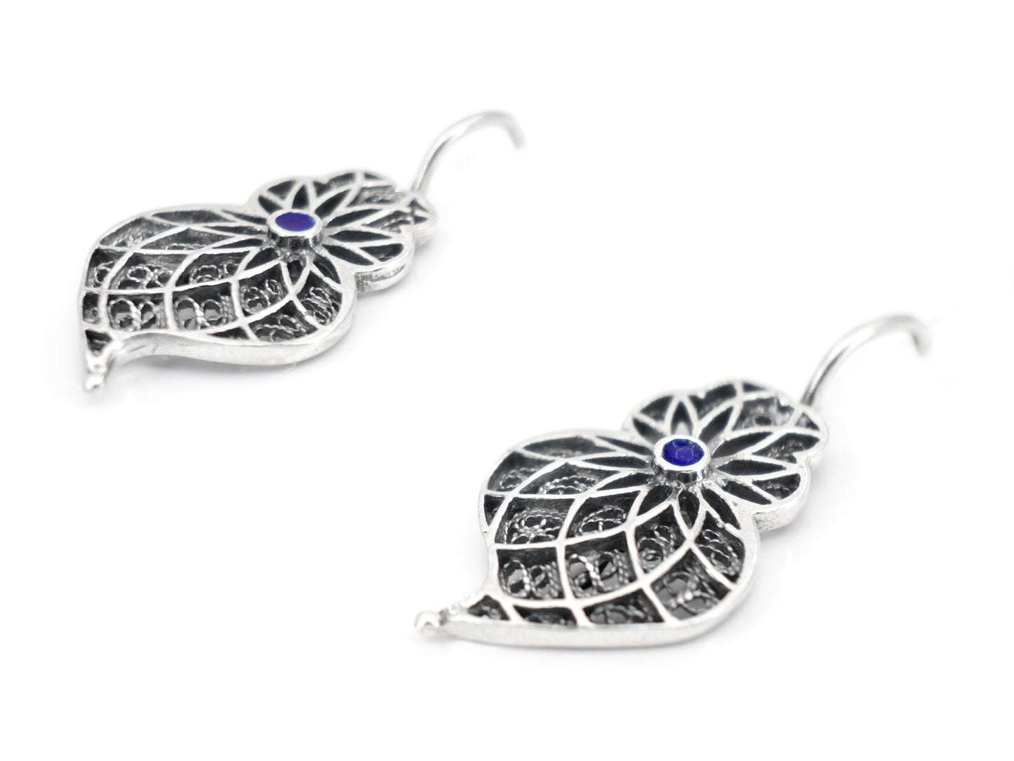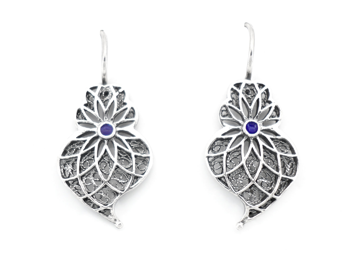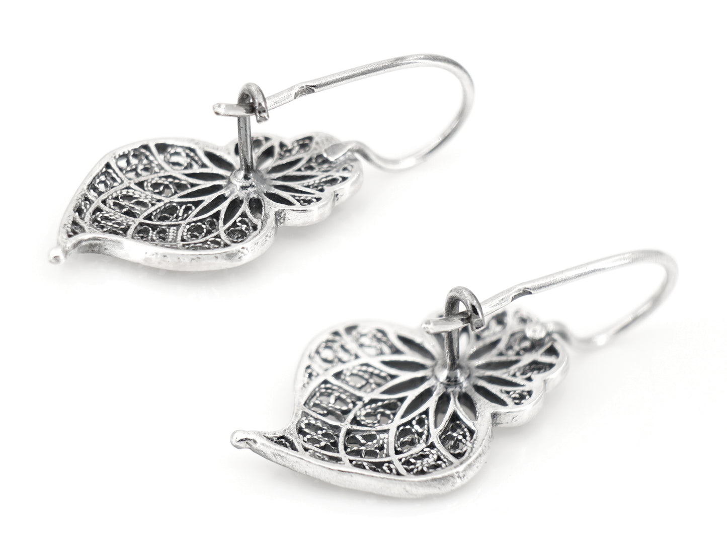 Elegant Small Heart hook Earrings with enamel. Portuguese Filigree, crafted in Portugal in 925 Sterling Silver.