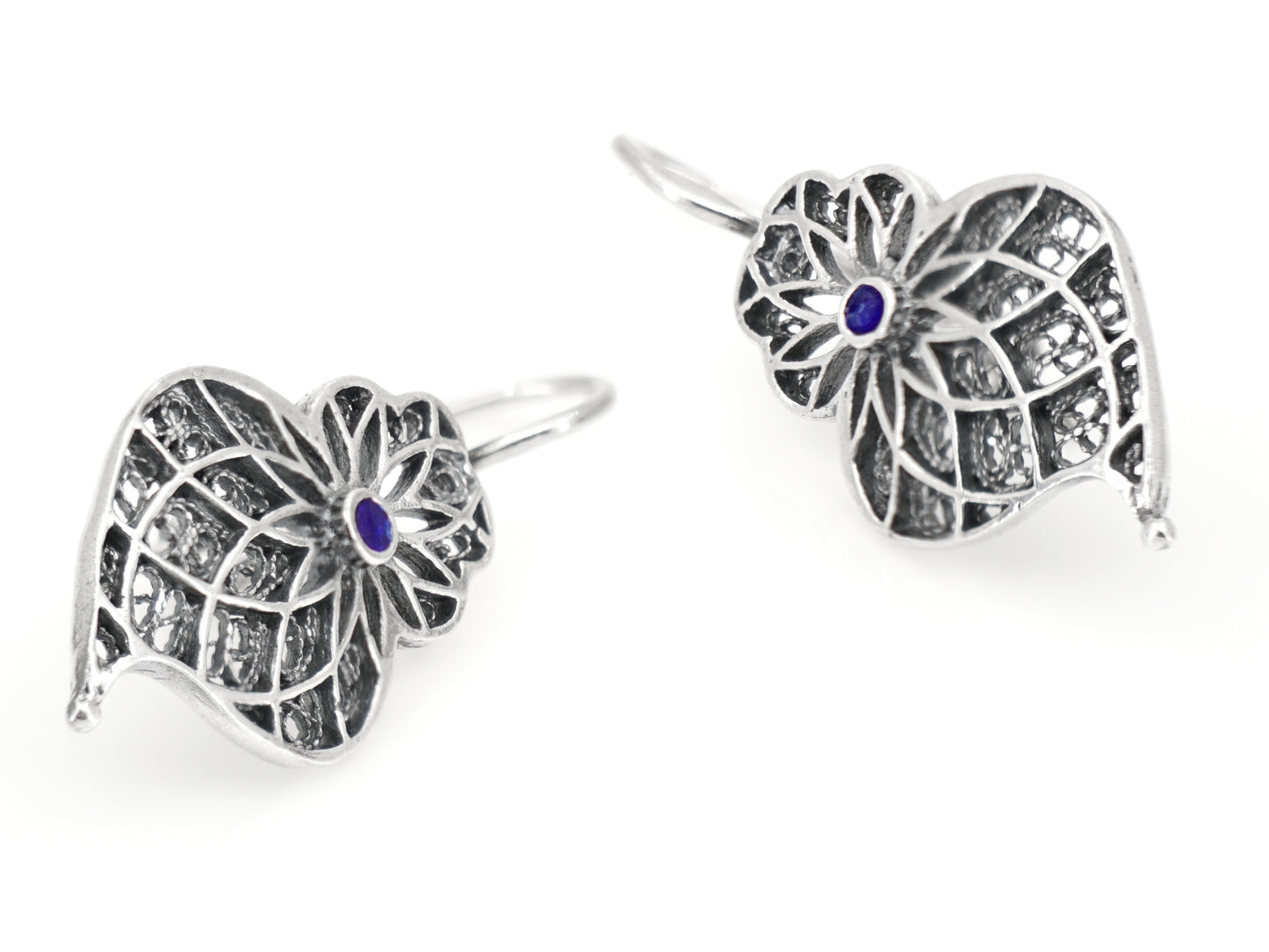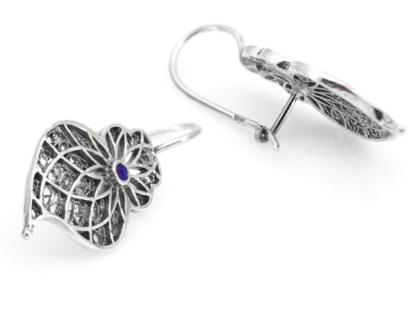 Small Heart Earrings with Enamel, Portuguese Filigree, 925 Sterling Silver