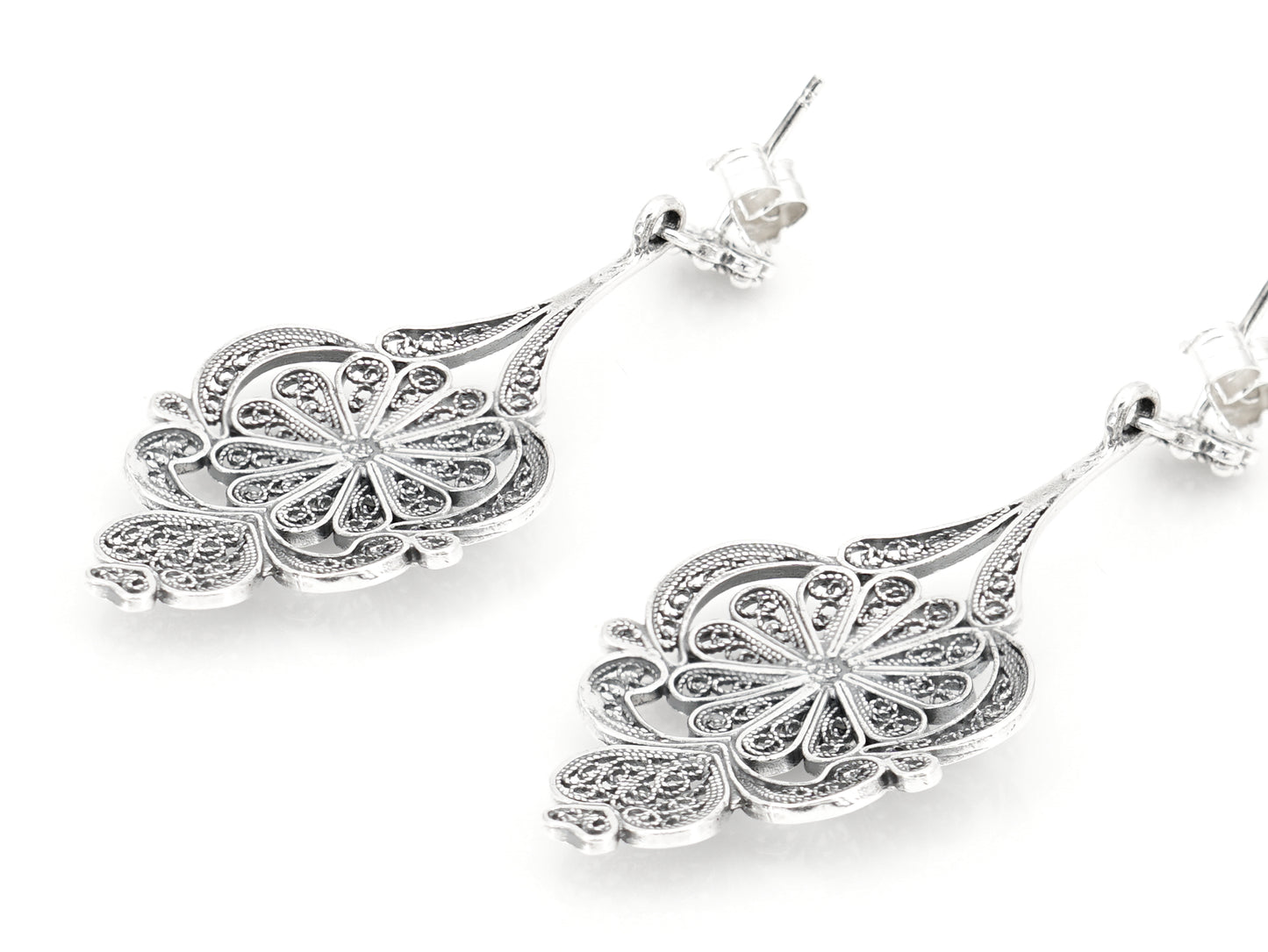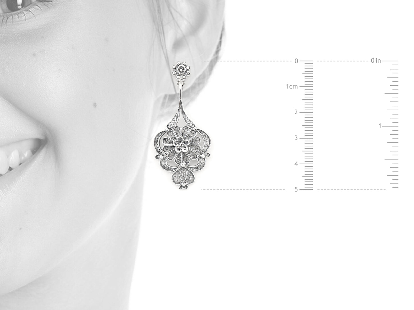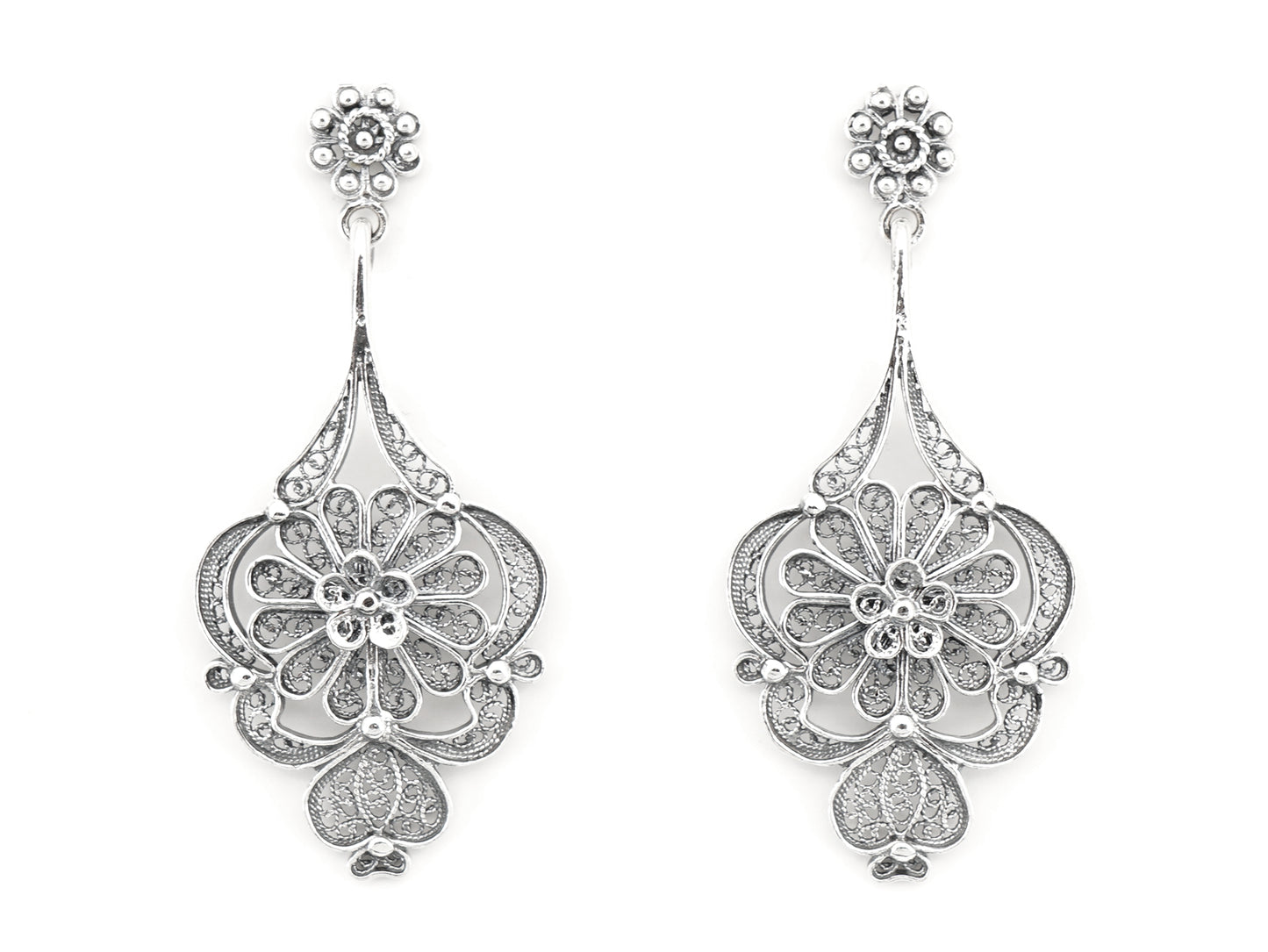 Elegant Classic Dangle pushback Earrings. Portuguese Filigree, crafted in Portugal in 925 Sterling Silver.
