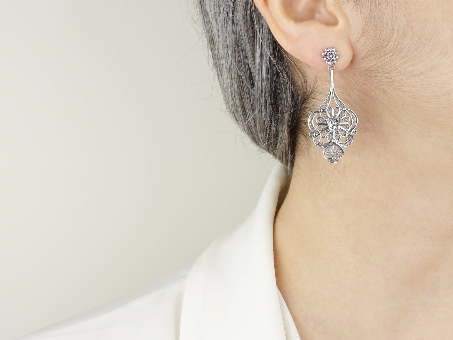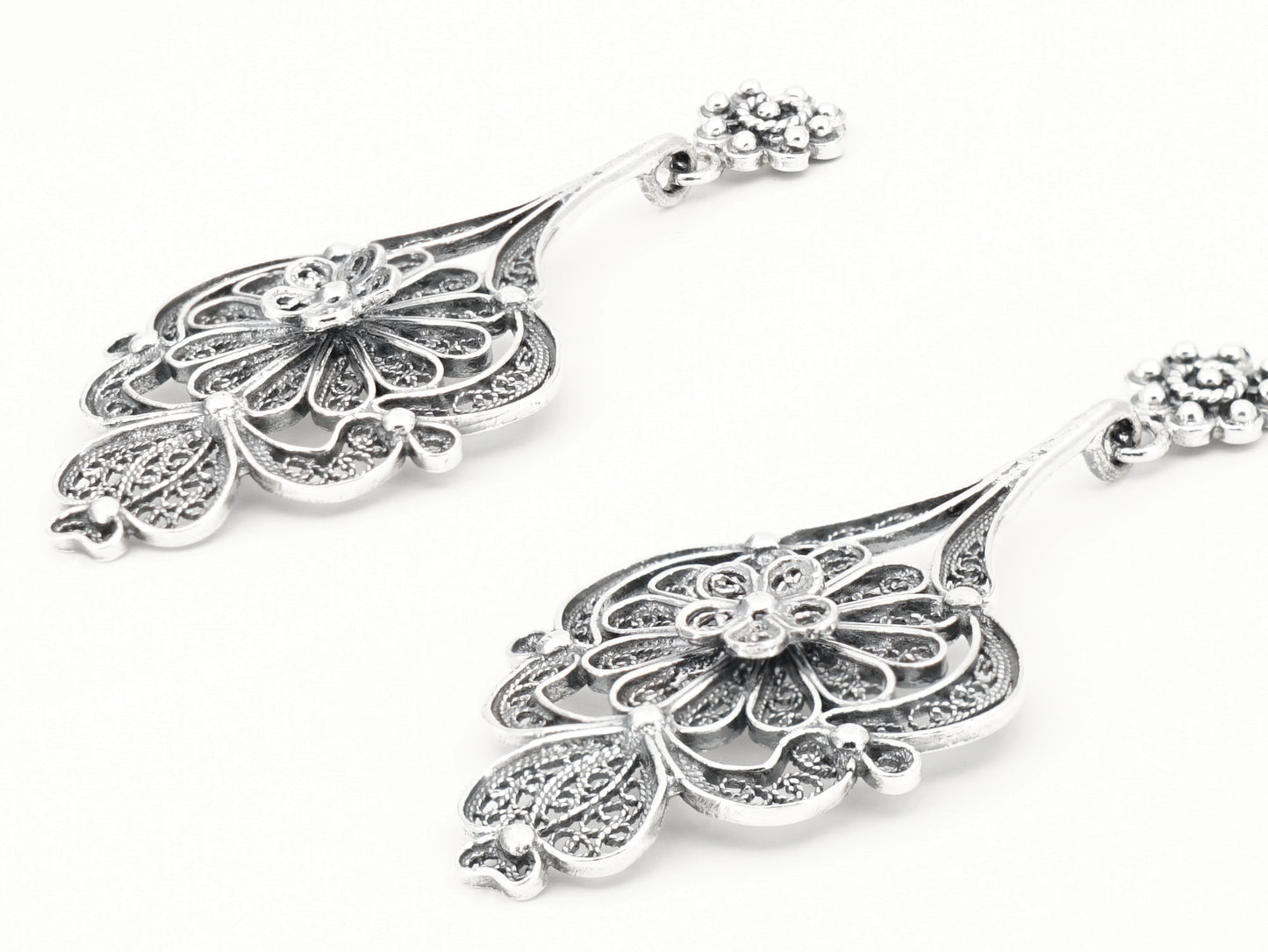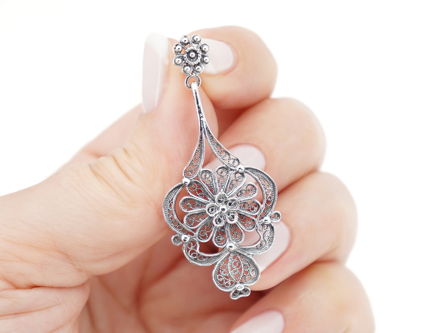 Elegant Classic Dangle pushback Earrings. Portuguese Filigree, crafted in Portugal in 925 Sterling Silver.