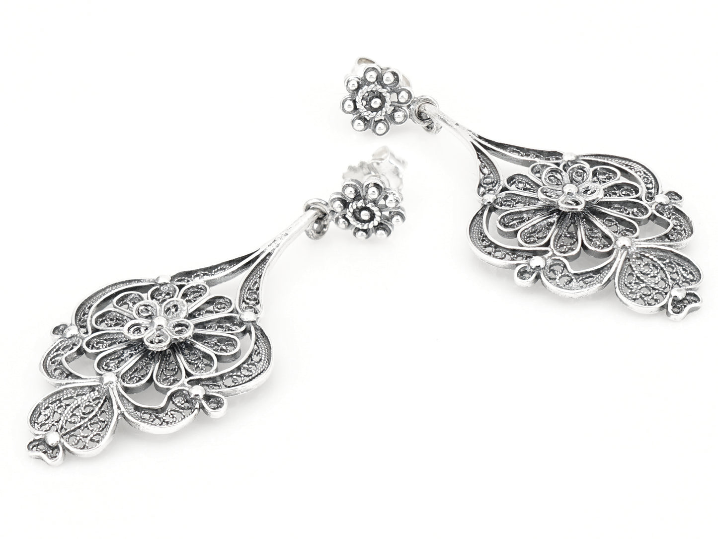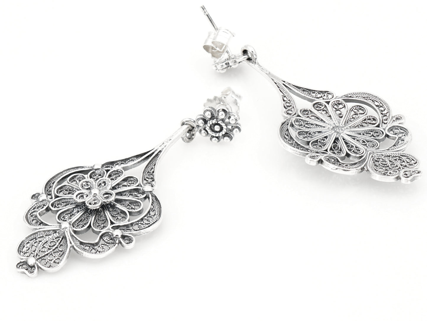 Classic Dangle Earrings, Portuguese Filigree, 925 Sterling Silver