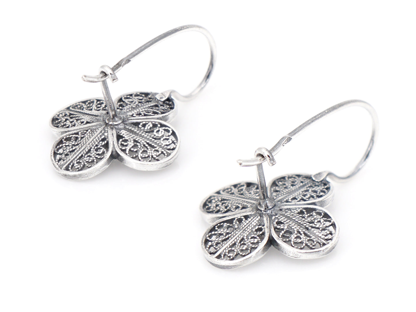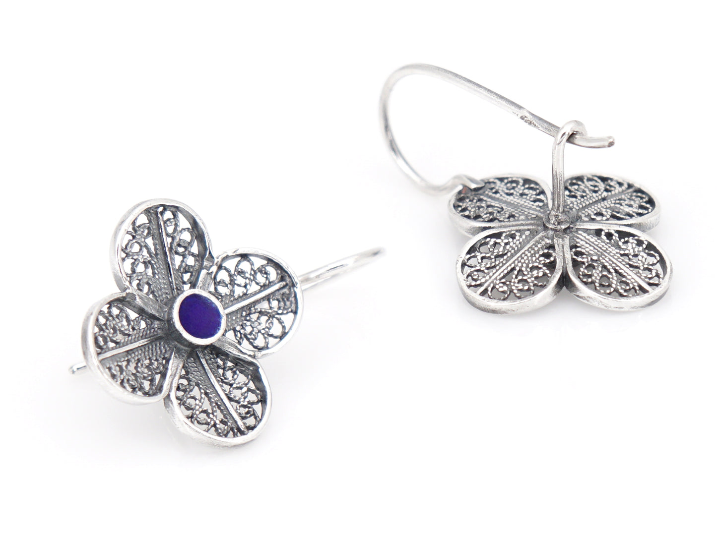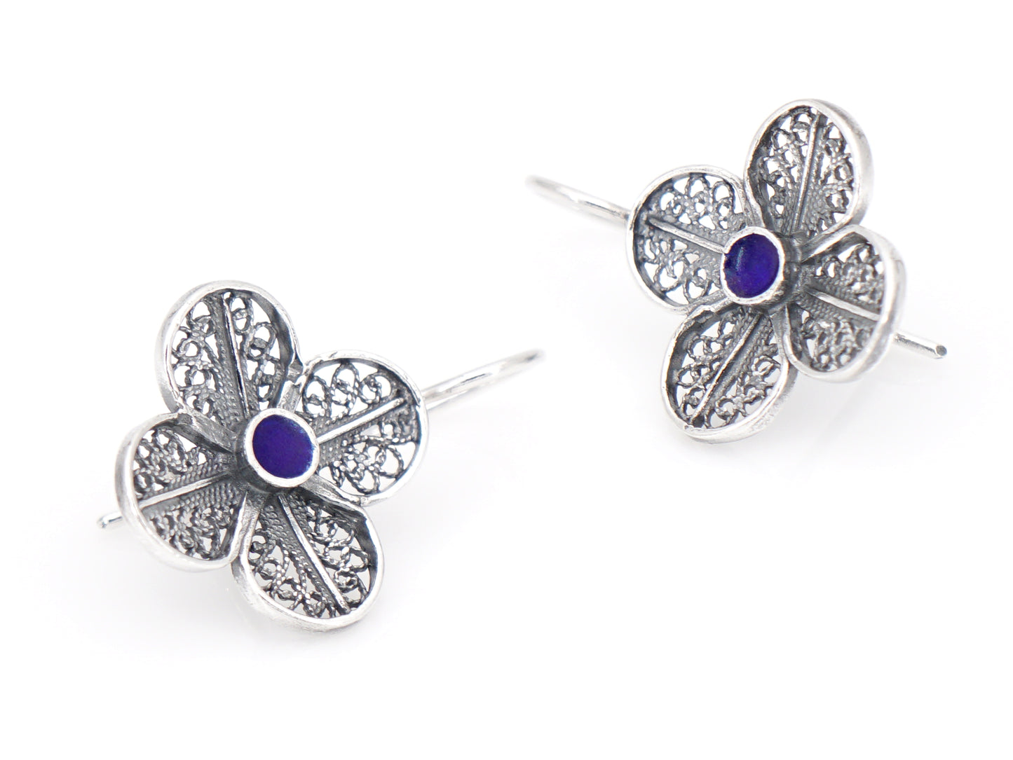 Flower Earrings with Enamel, Portuguese Filigree, 925 Sterling Silver