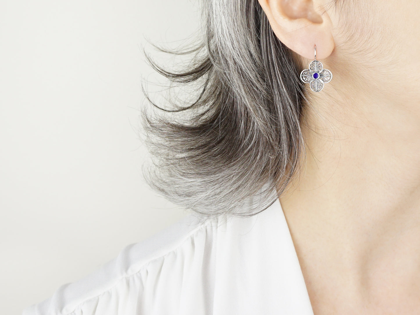 - Model: Small Flower hook Earrings with Blue Enamel Center