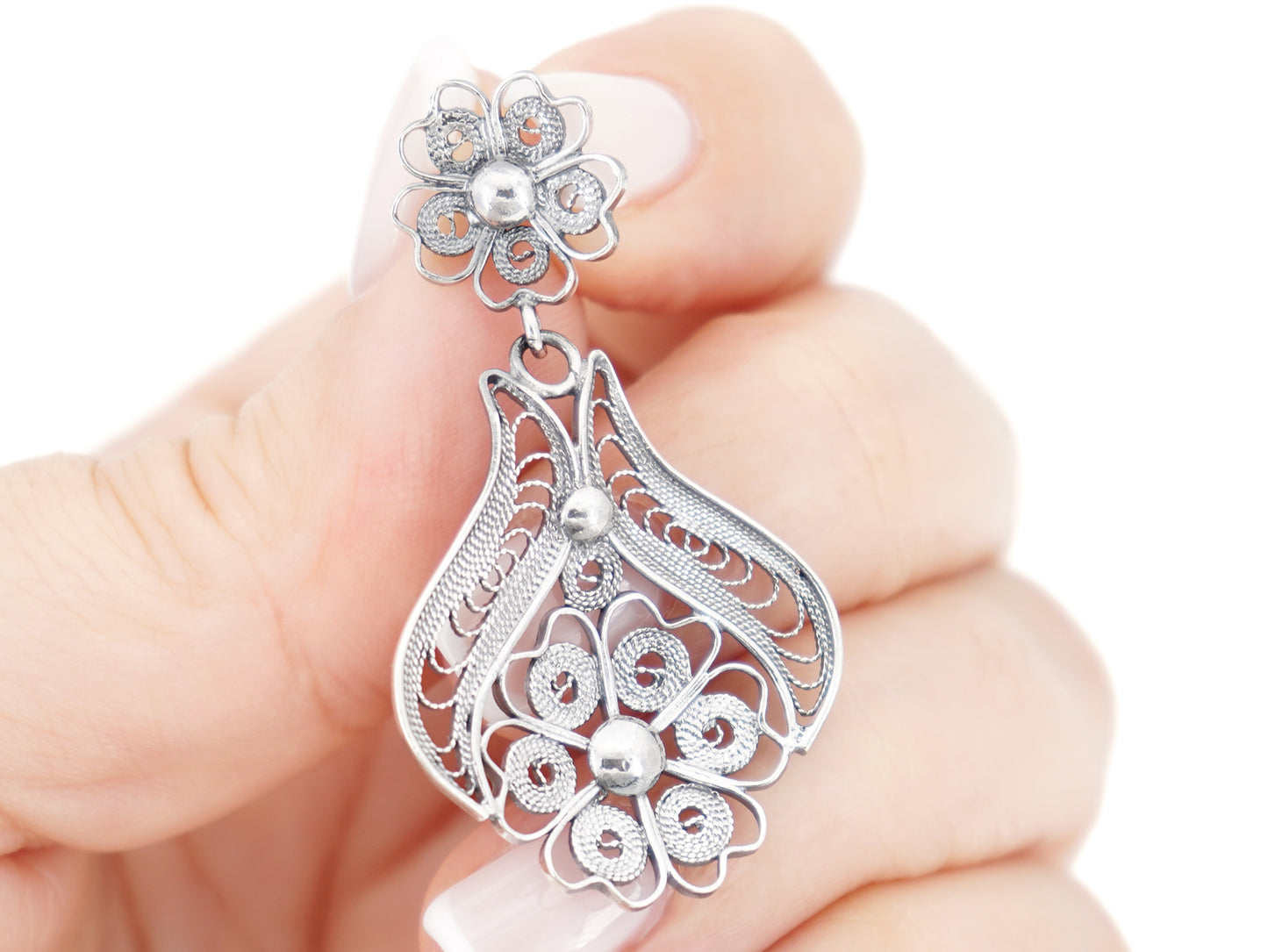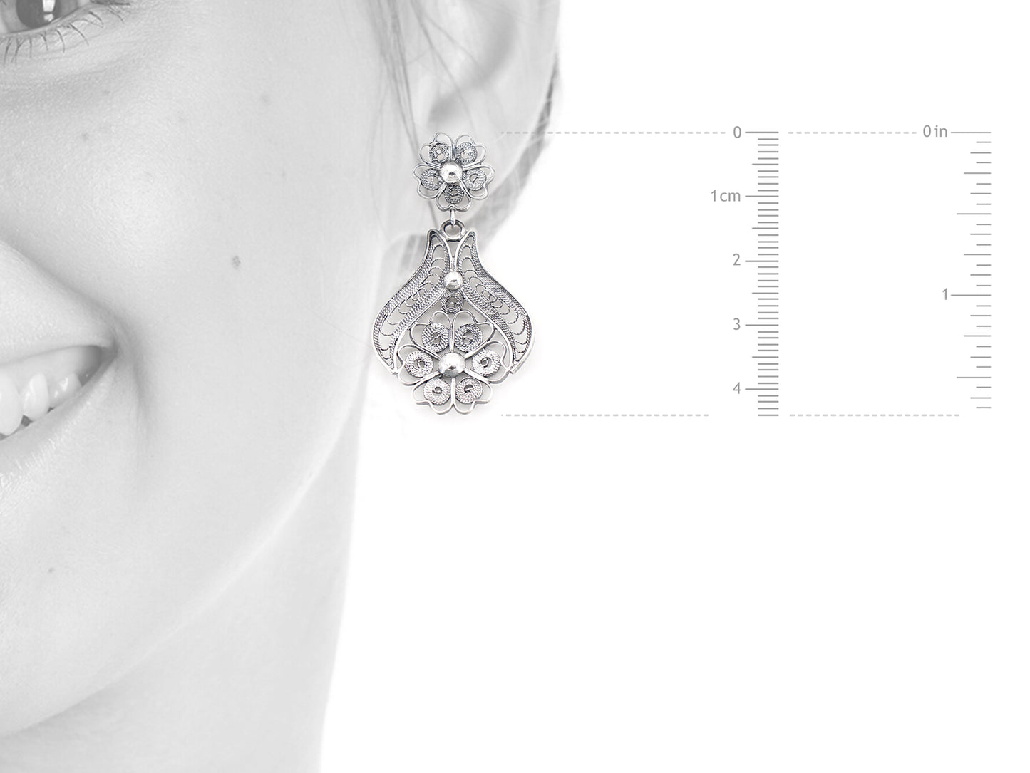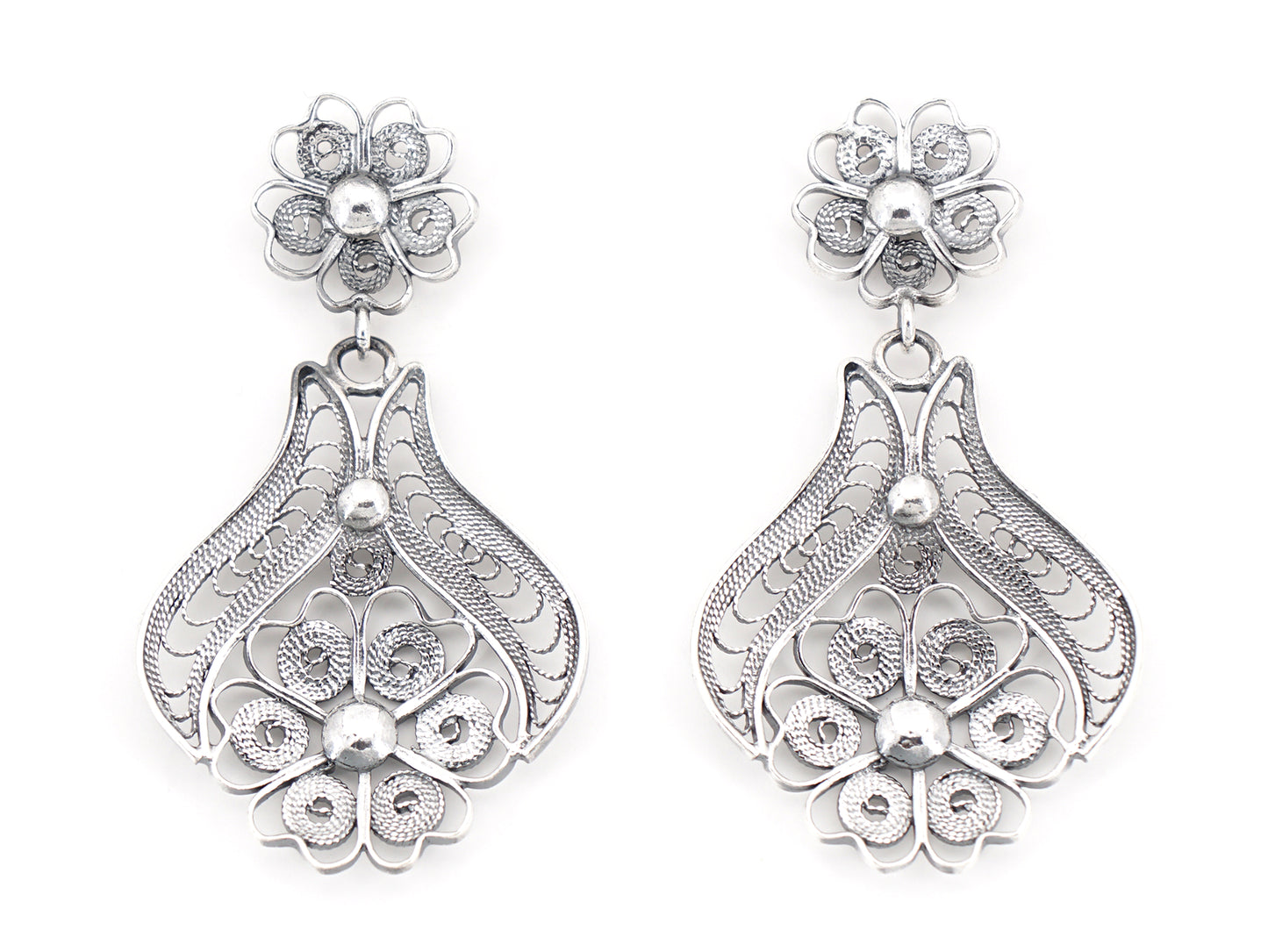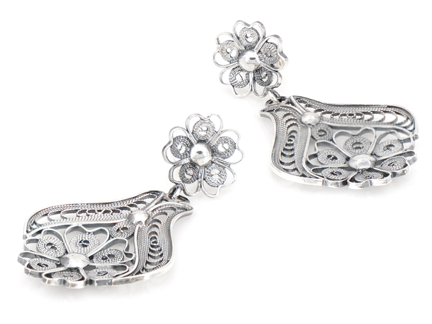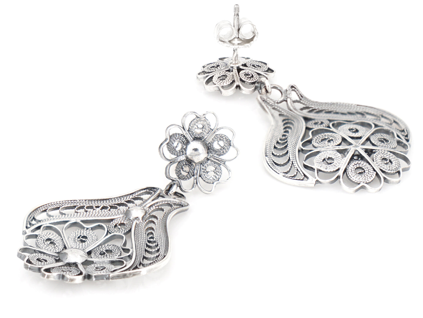 Elegant Rounded Antique Style pushback Earrings. Portuguese Filigree, crafted in Portugal in 925 Sterling Silver.