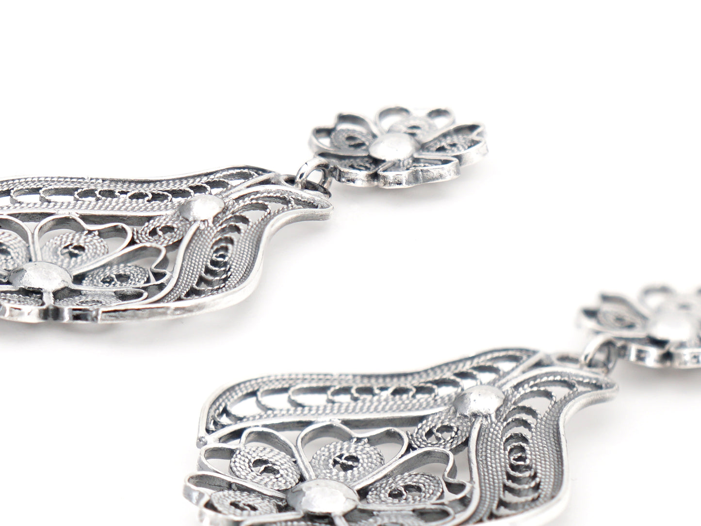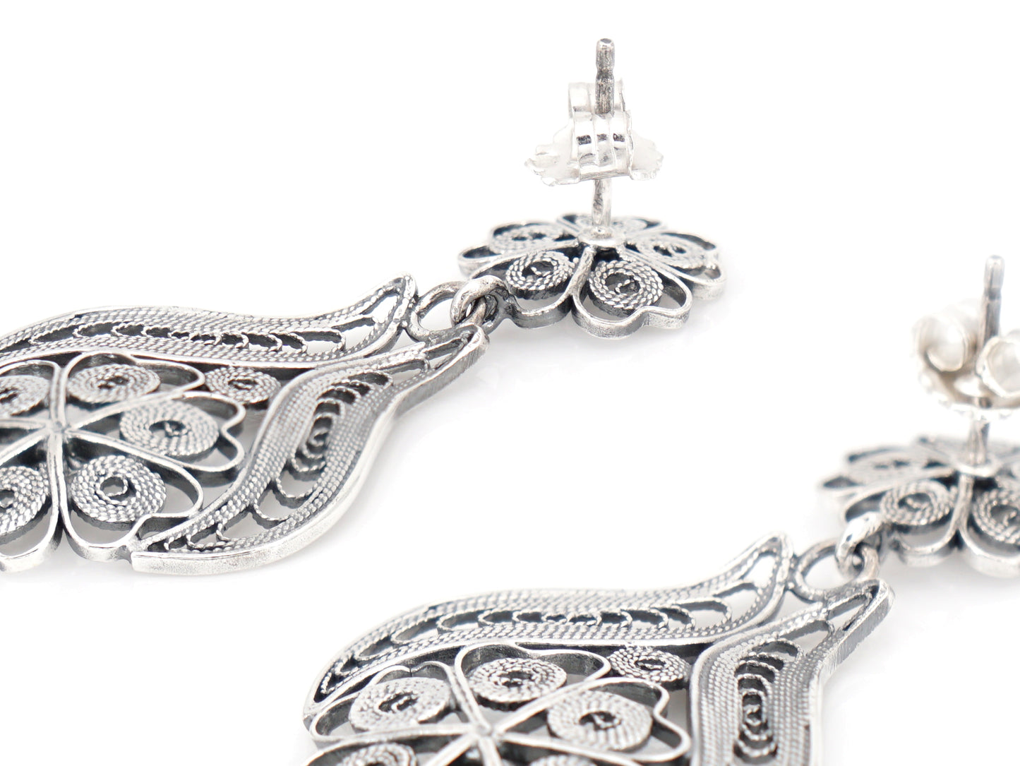 Rounded Antique Style Earrings, Portuguese Filigree, 925 Sterling Silver