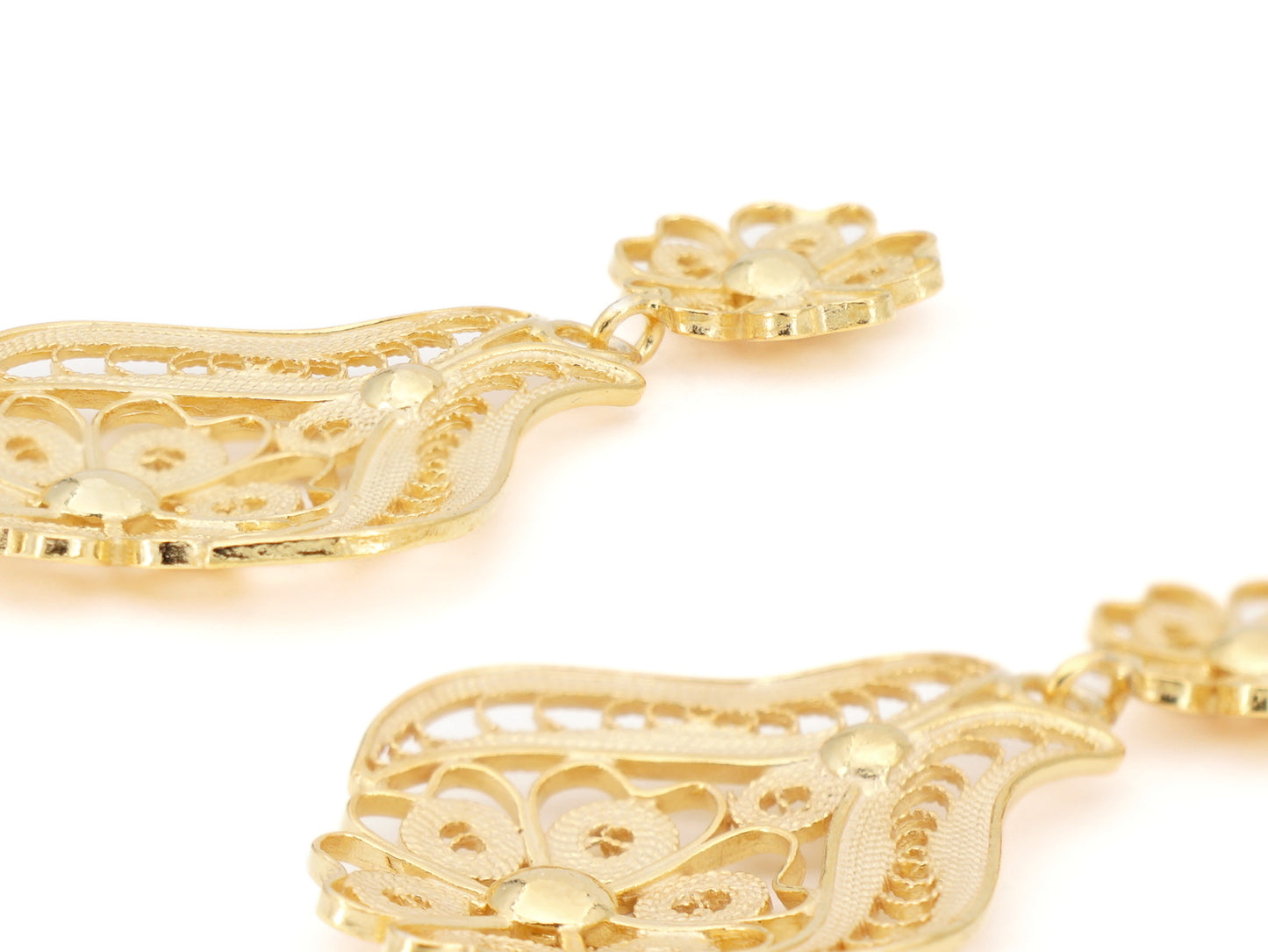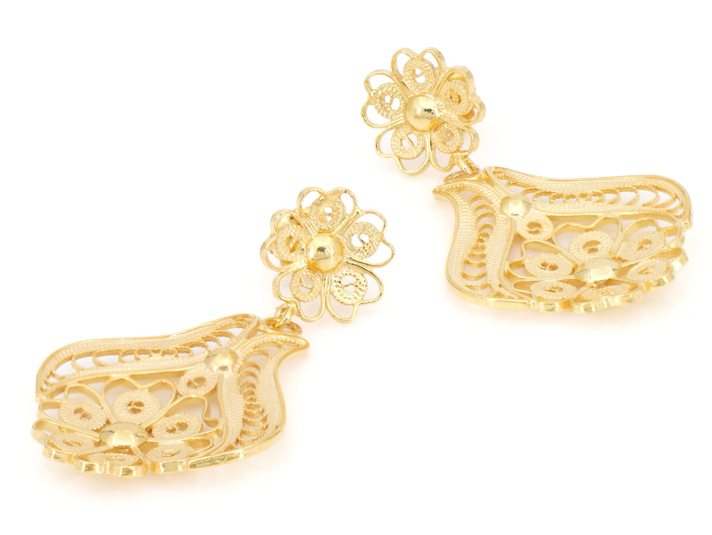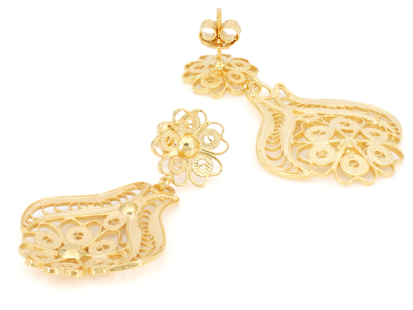 Rounded Antique Style Earrings, Portuguese Filigree, Golden 925 Sterling Silver