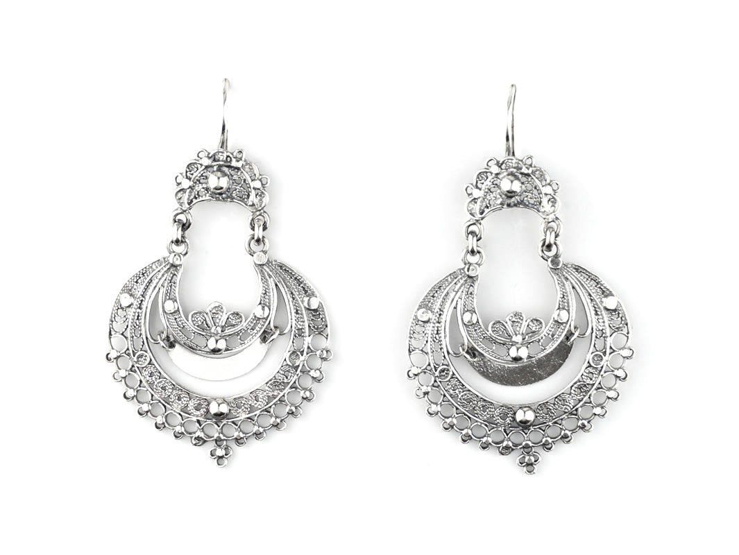 Medium-sized Rounded Arrecadas Earrings, Portuguese Filigree, 925 Sterling Silver
