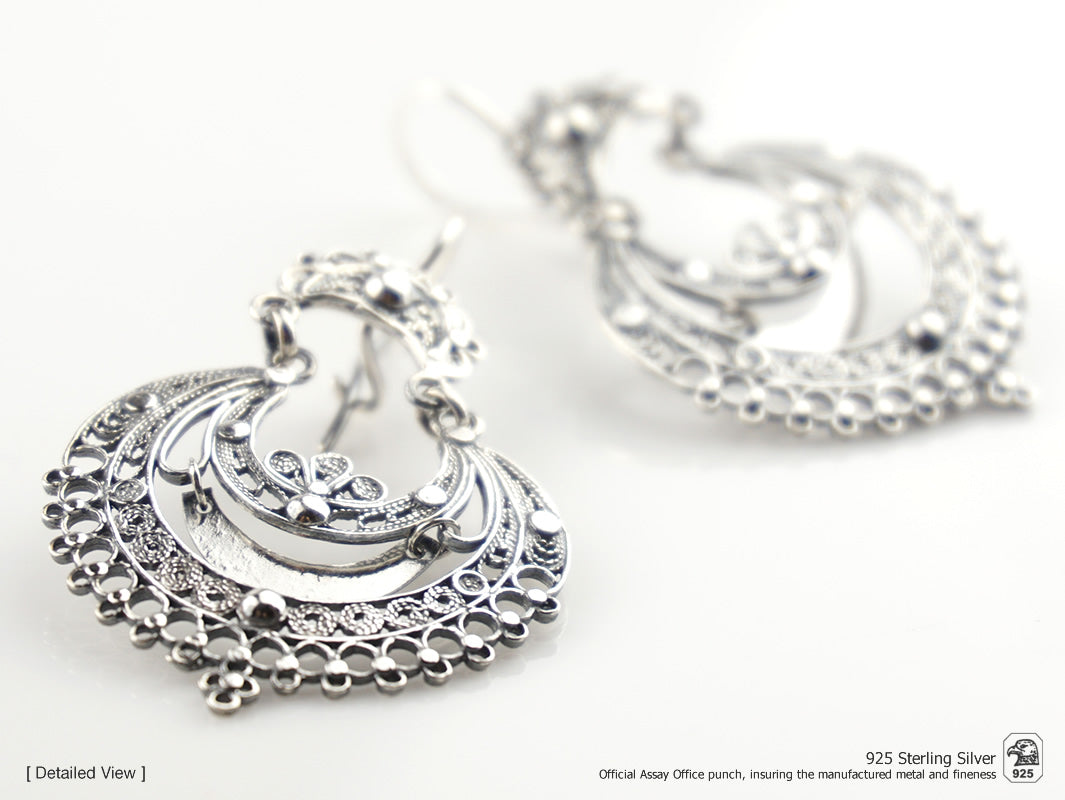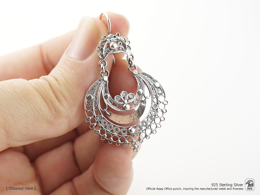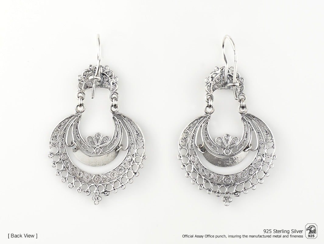 Elegant medium-sized Rounded "Arrecadas" hook Earrings. Portuguese Filigree, crafted in Portugal in 925 Sterling Silver.