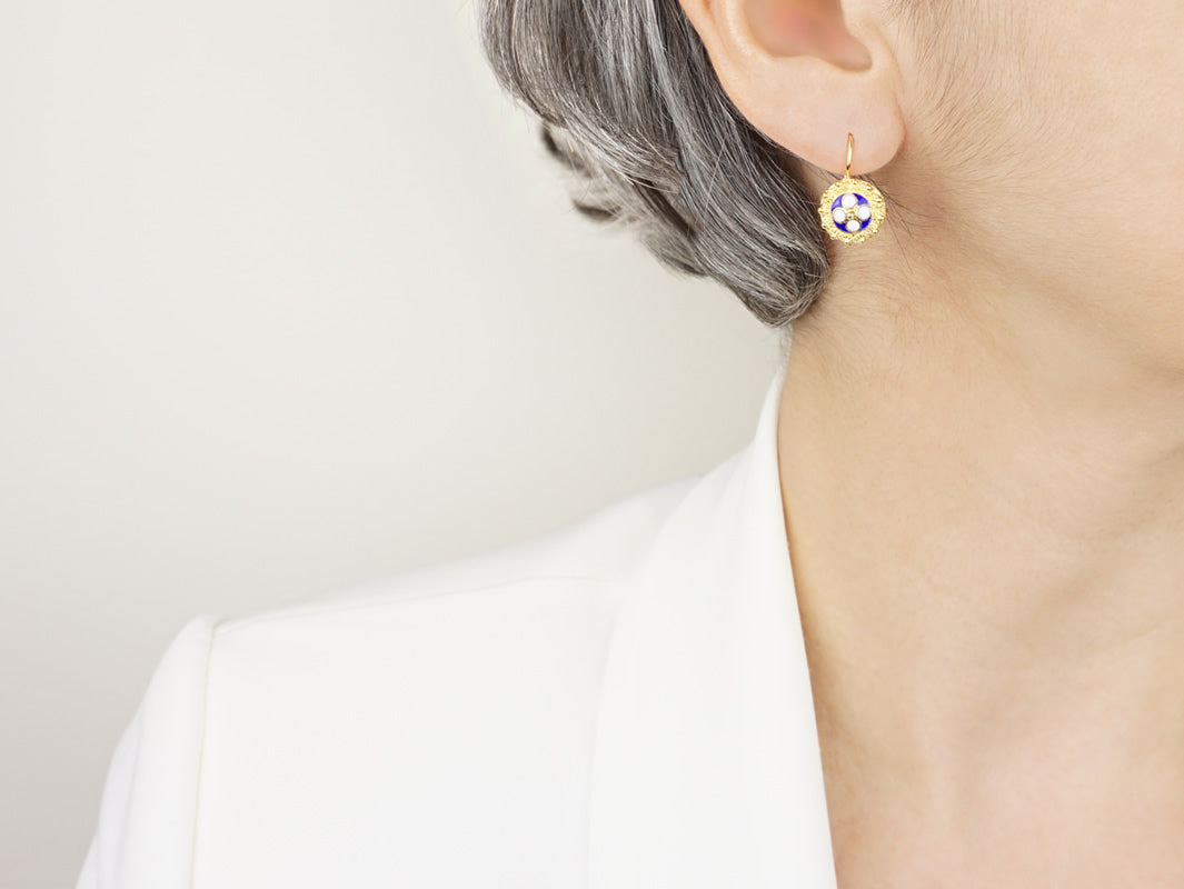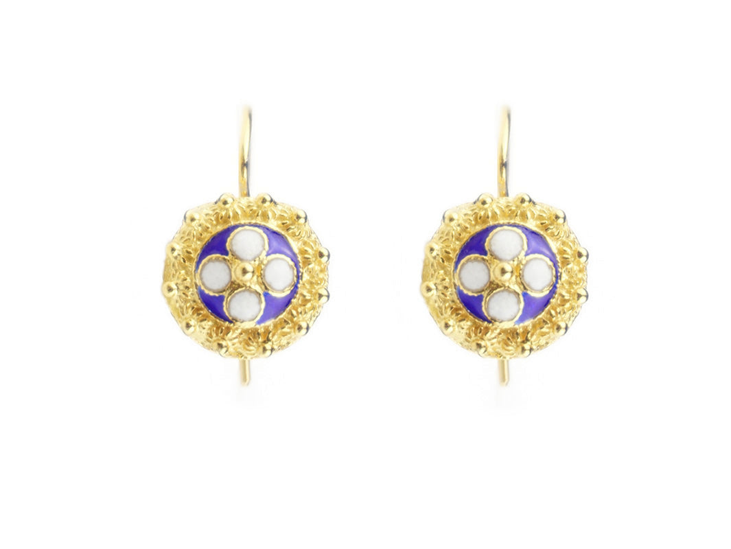 - Model: Classic Caramujo Earrings with Blue and White Enamel