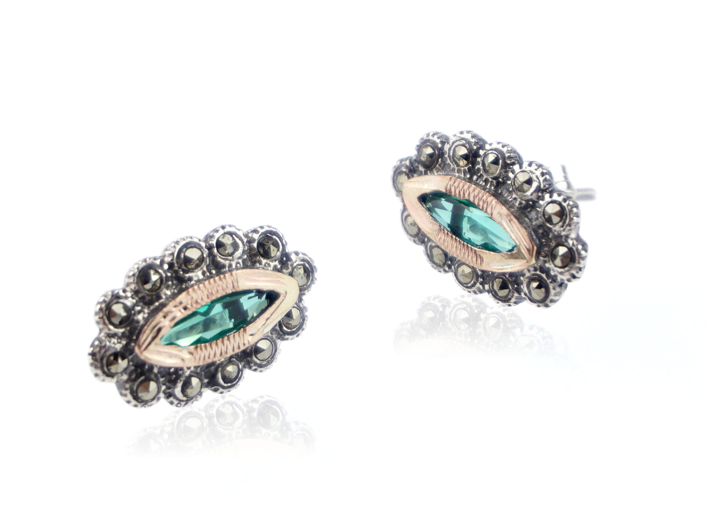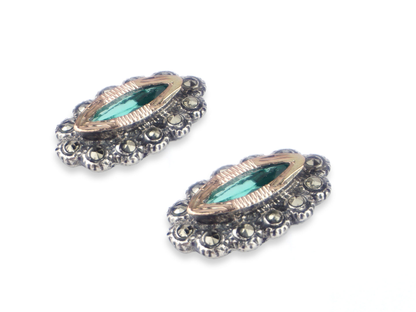 - Model: Navette Marcasites Earrings with Pale Green stone