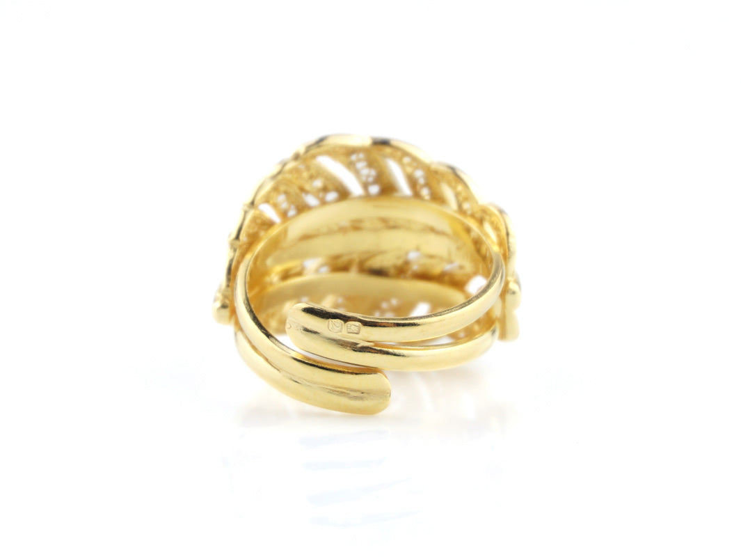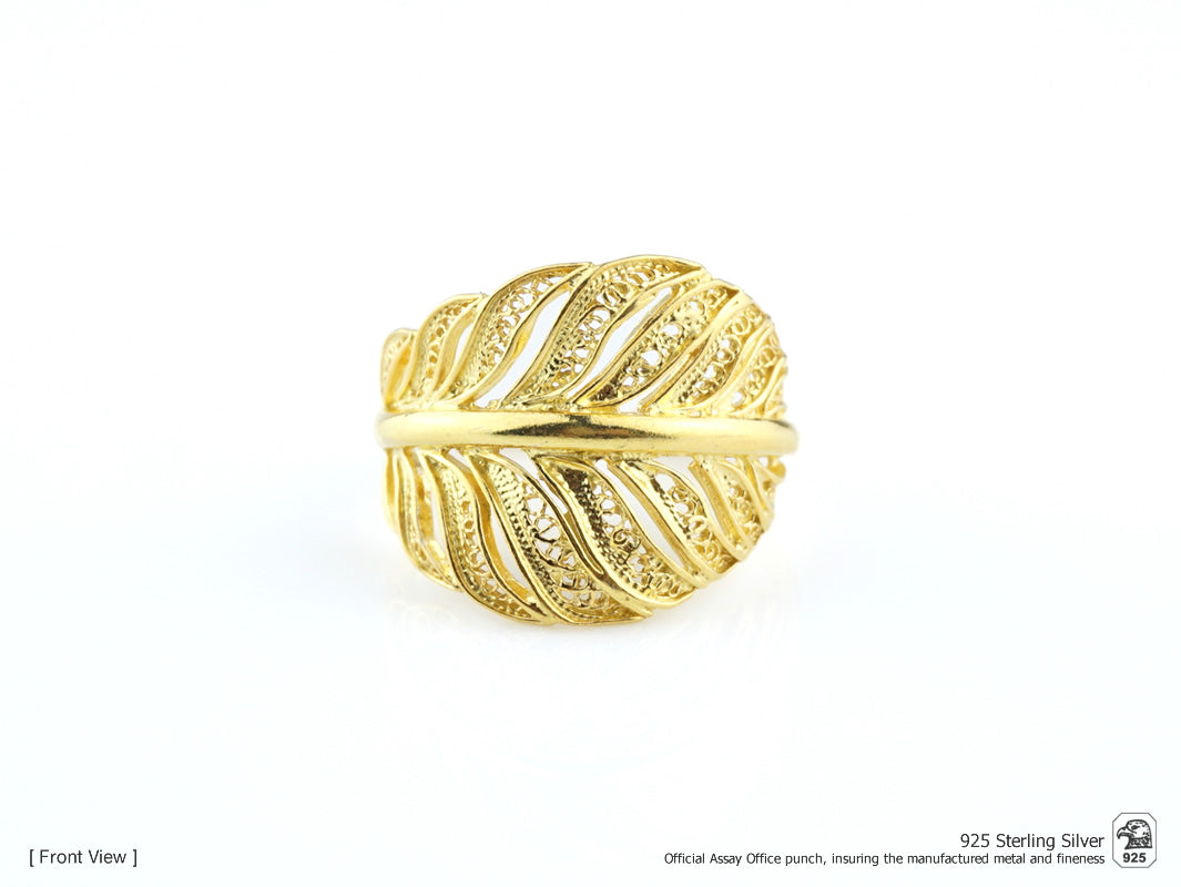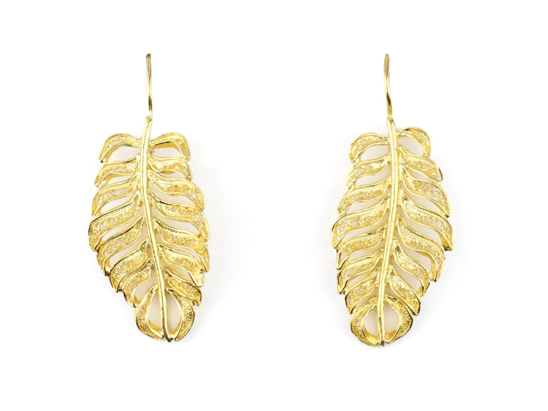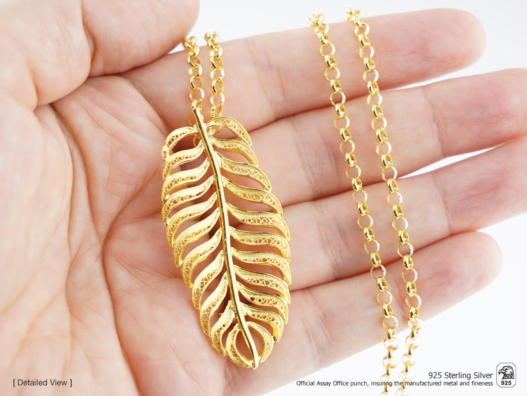 Long Leaf SET Earrings, Ring and Necklace, Portuguese Filigree, Golden 925 Sterling Silver