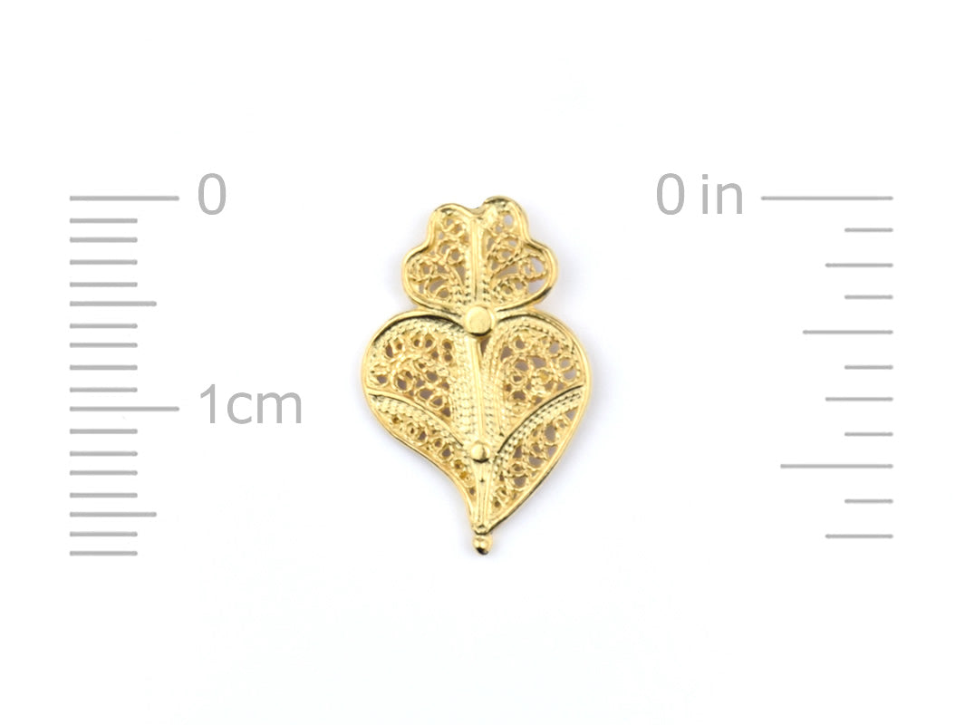 Small Viana Heart SET Earrings and Necklace, Portuguese Filigree, Golden 925 Sterling Silver