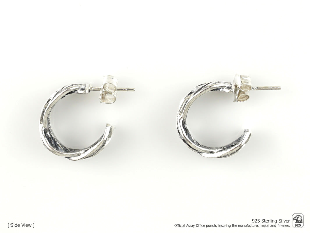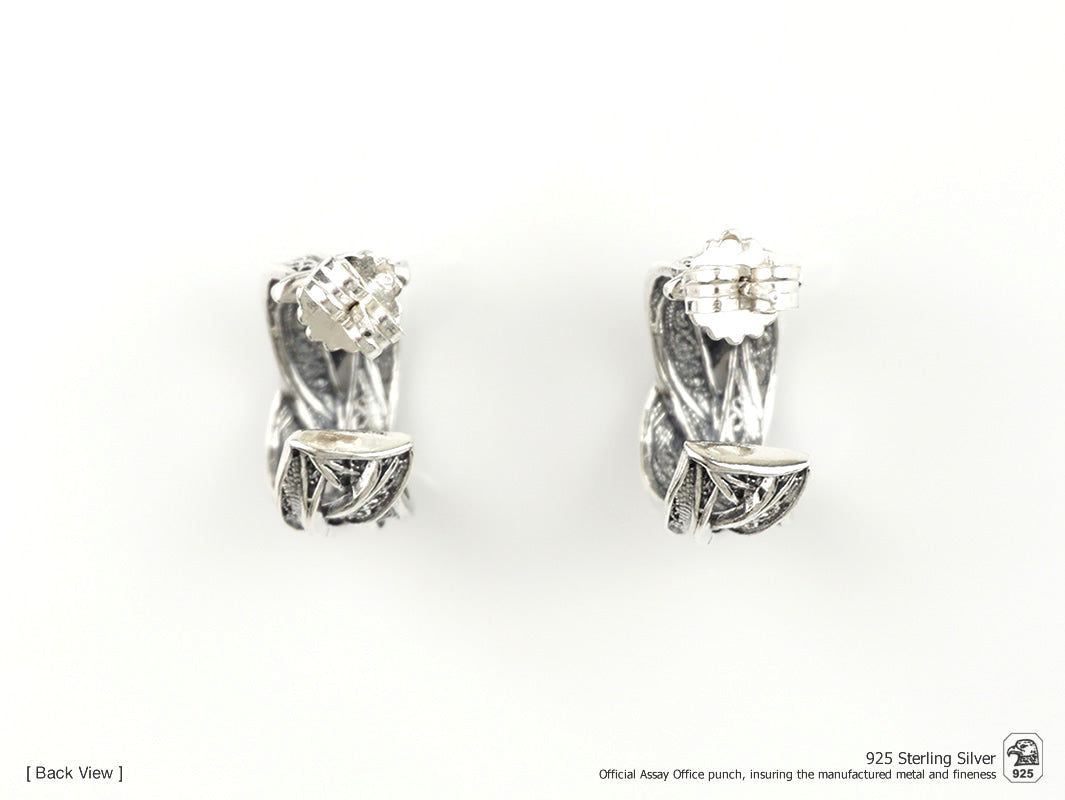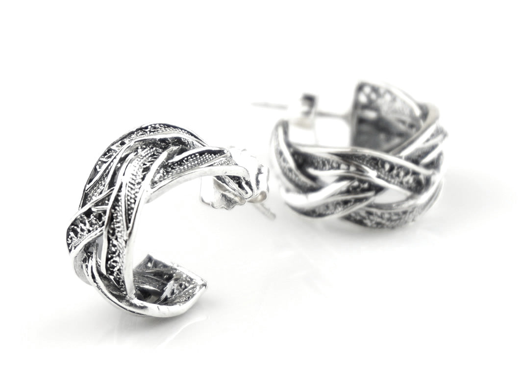 Elegant Small Braided half-hoops pushback Earrings. Portuguese Filigree, crafted in Portugal in 925 Sterling Silver.