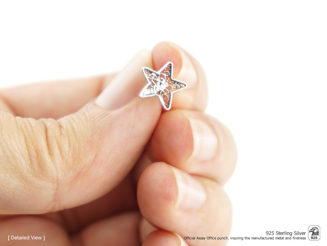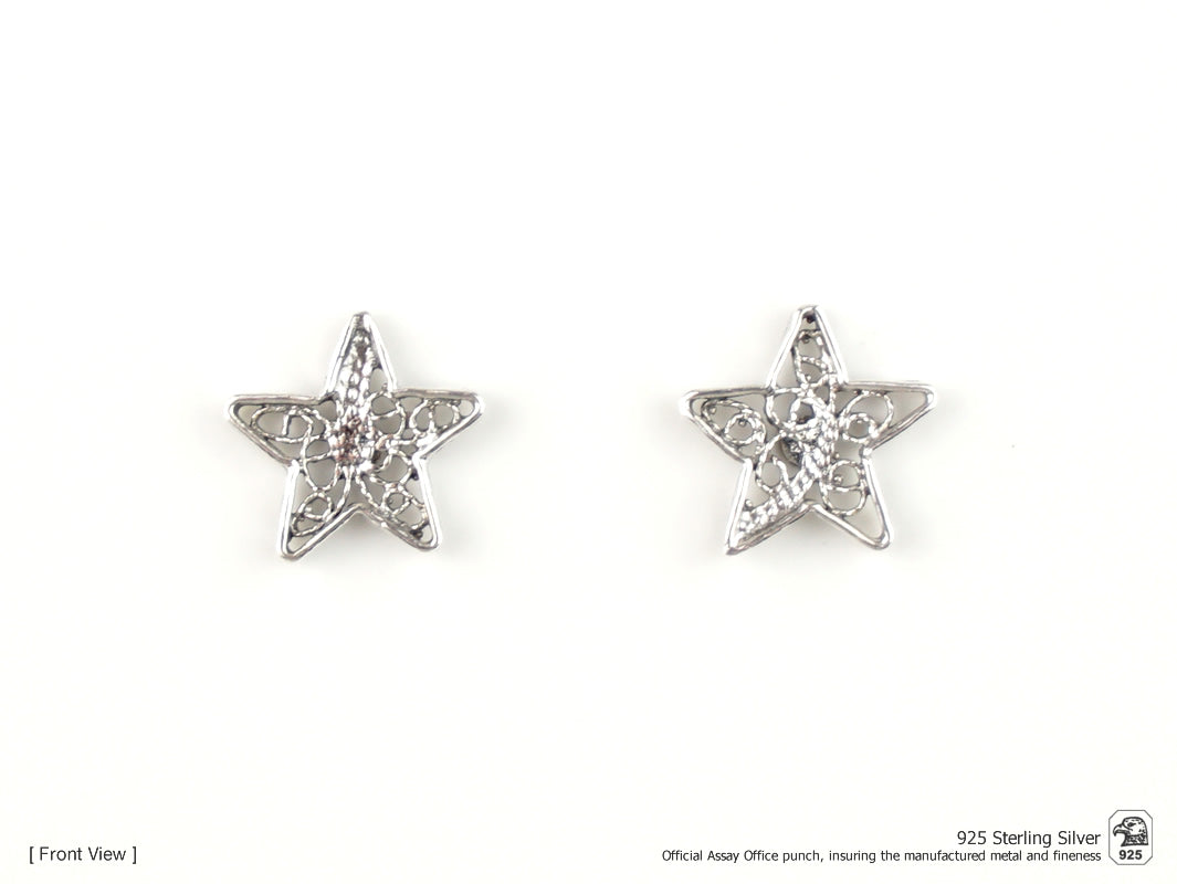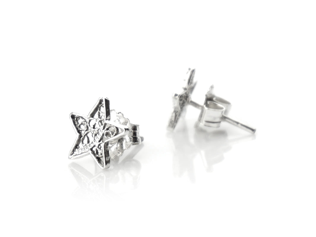 Elegant Small Stars pushback Earrings, in Portuguese Filigree, crafted in Portugal in 925 Sterling Silver.