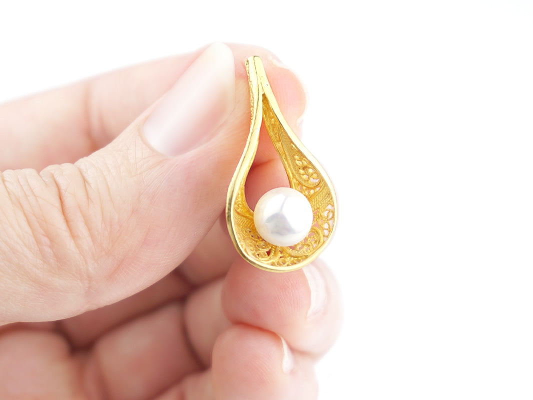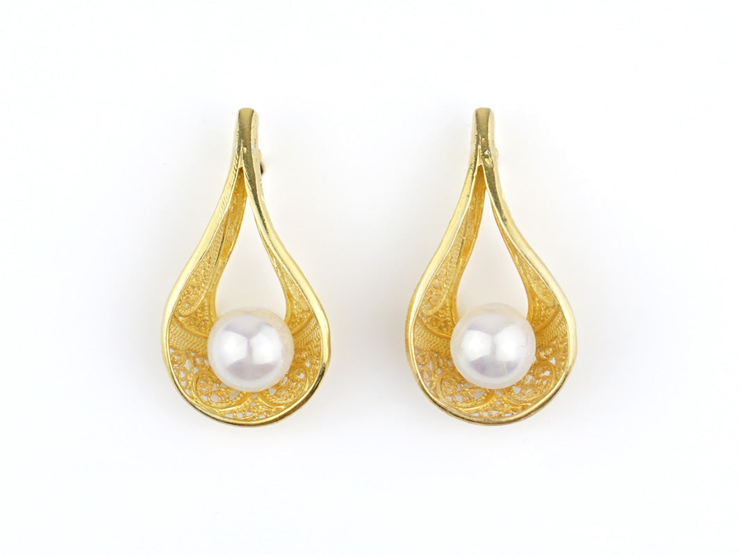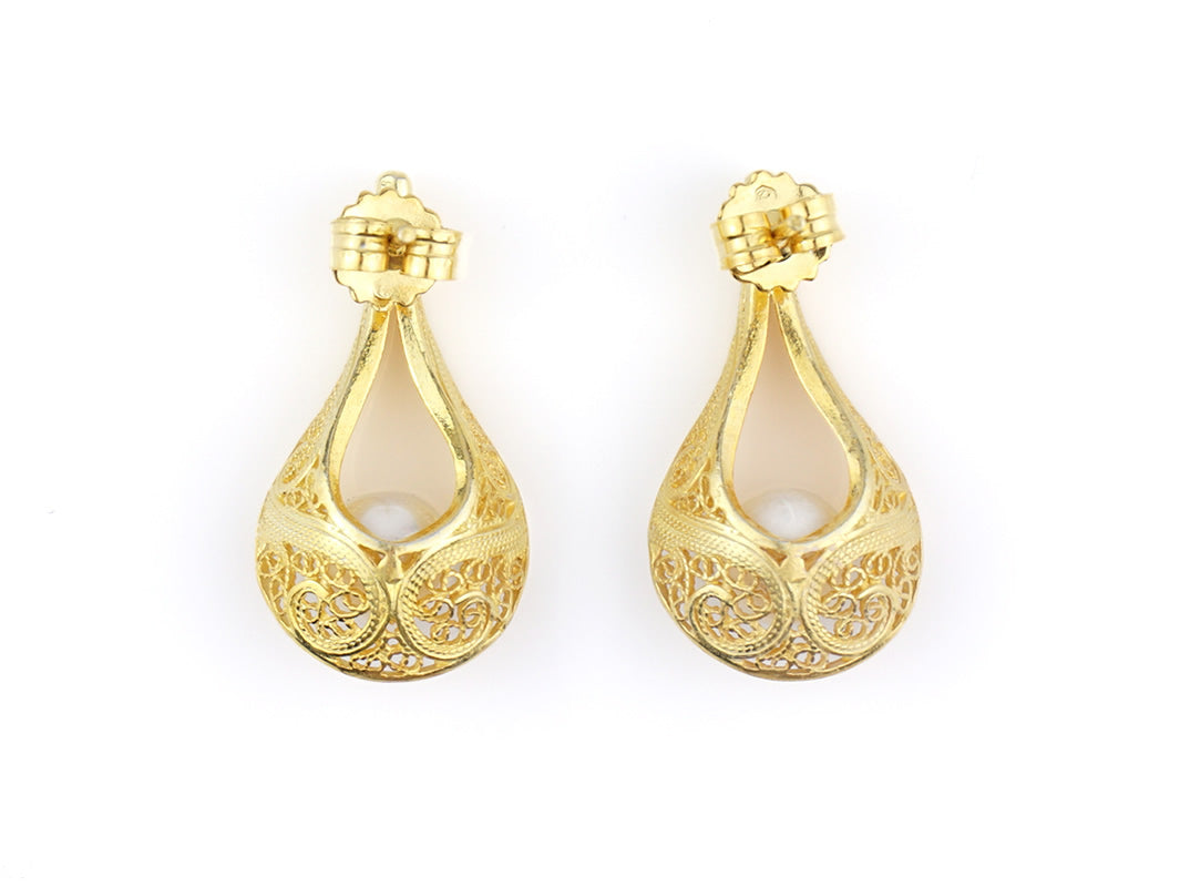Earrings with Pearls, Portuguese Filigree, Golden 925 Sterling Silver