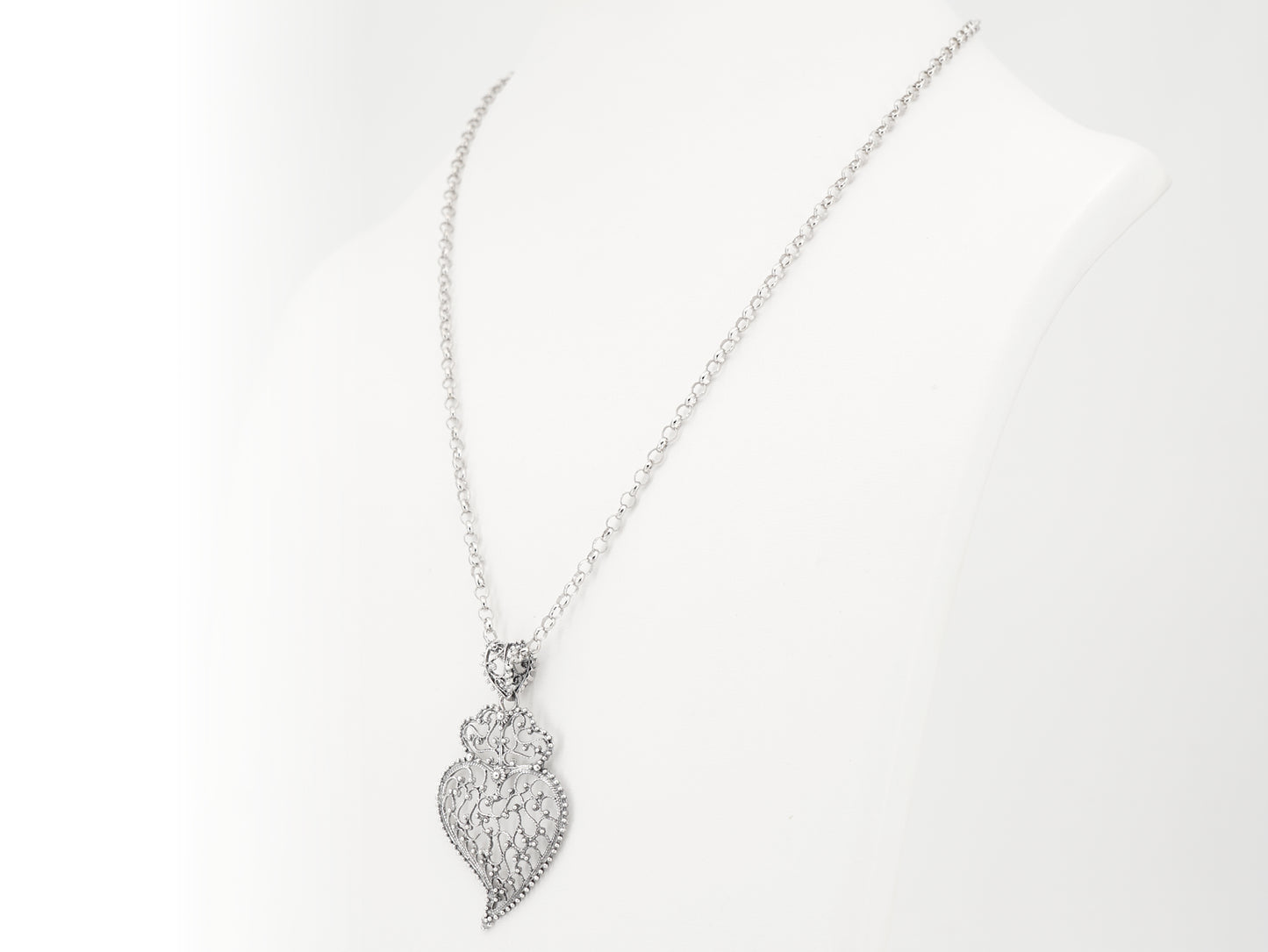 Elegant "Renda Viana Heart" SET consisting of small hook Earrings and Necklace with medium-sized Pendant. Portuguese Filigree, crafted in Portugal in 925 Sterling Silver.