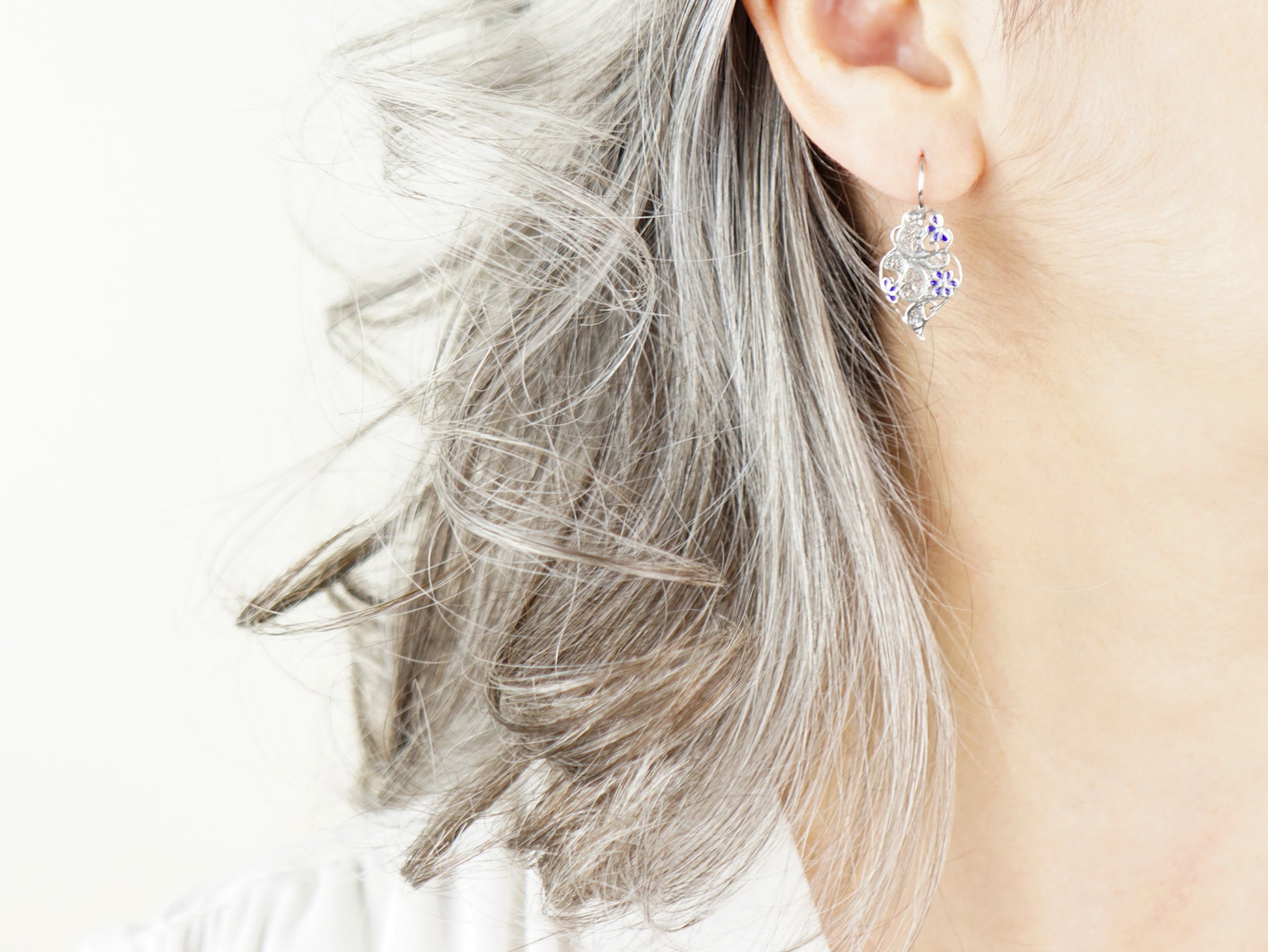 Elegant "Heart with Enameled Flowers" Set consisting of Earrings and Bracelet with three hearts. Portuguese Filigree, crafted in Portugal in 925 Sterling Silver.