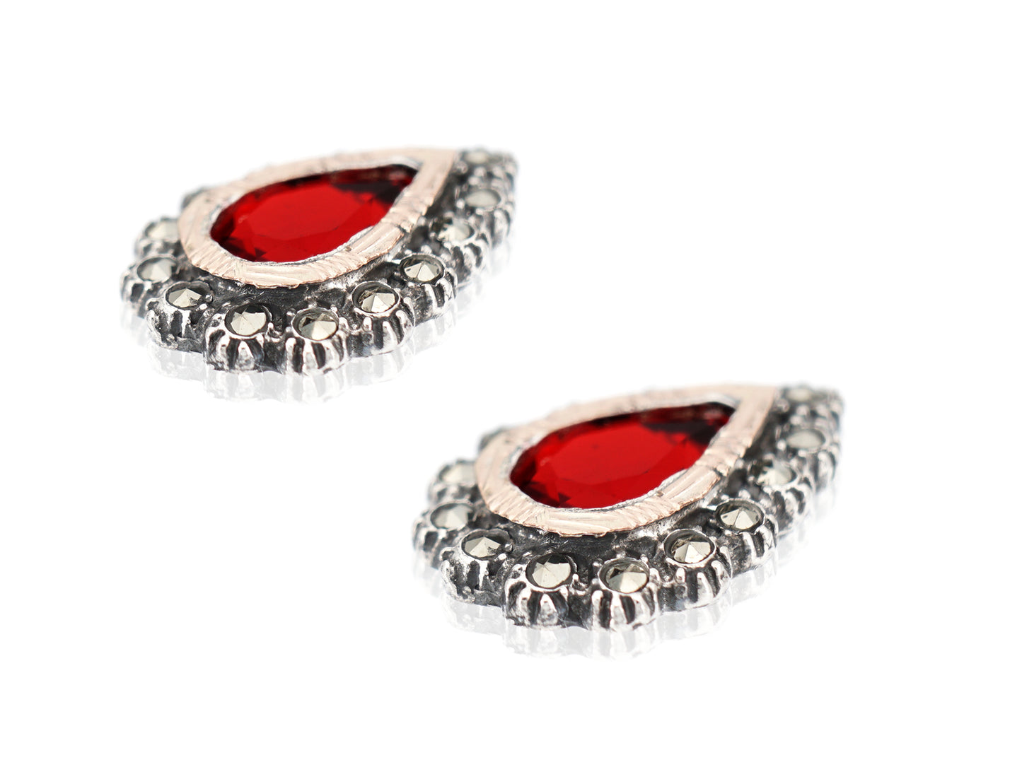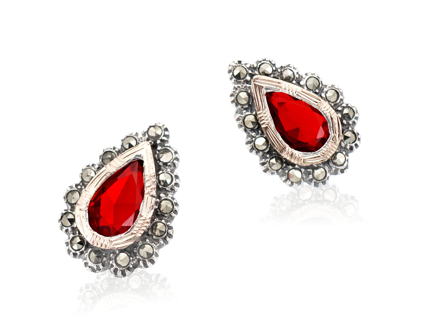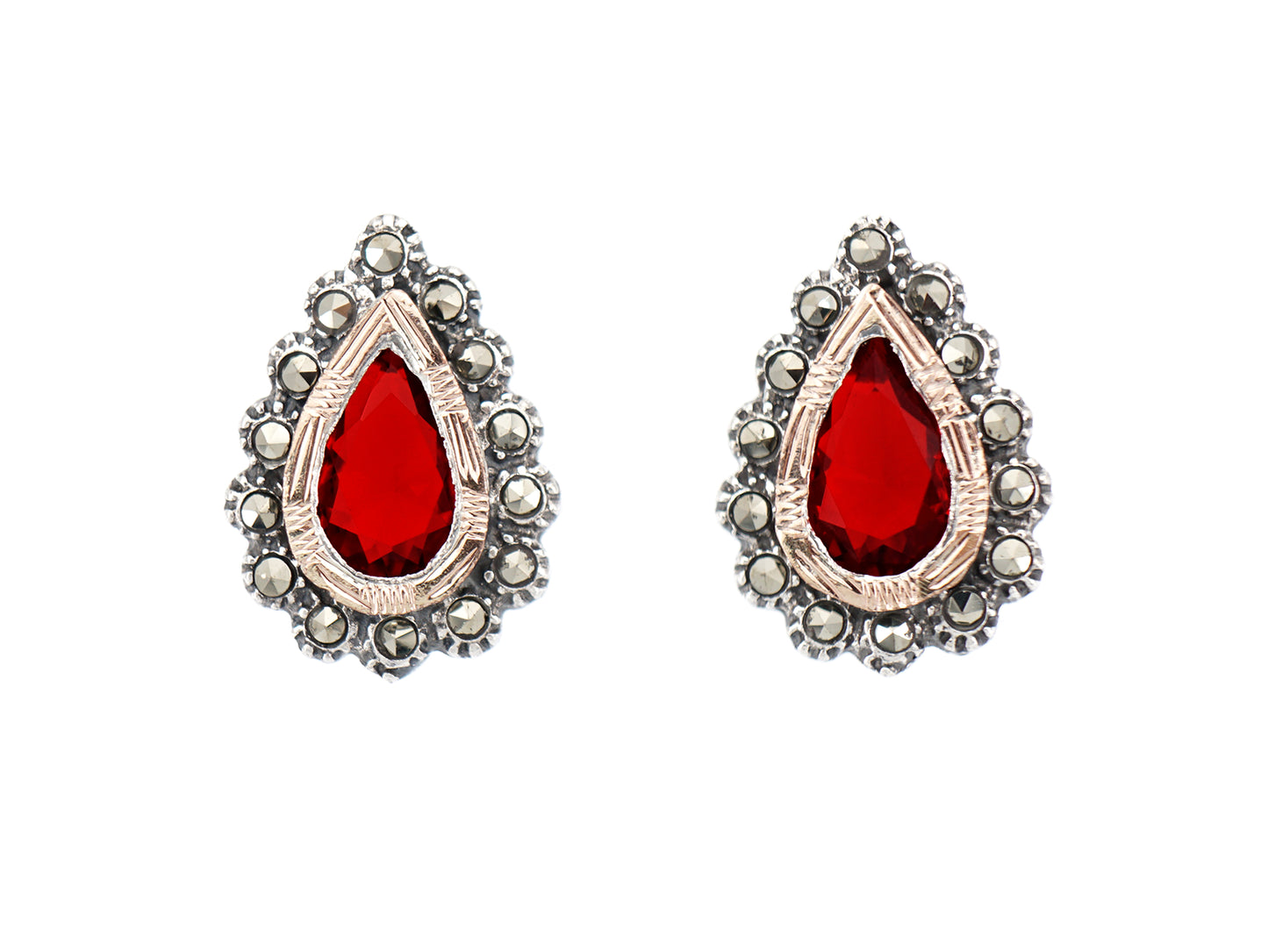 - Model: Marcasites Teardrop Earrings with Red Stone
