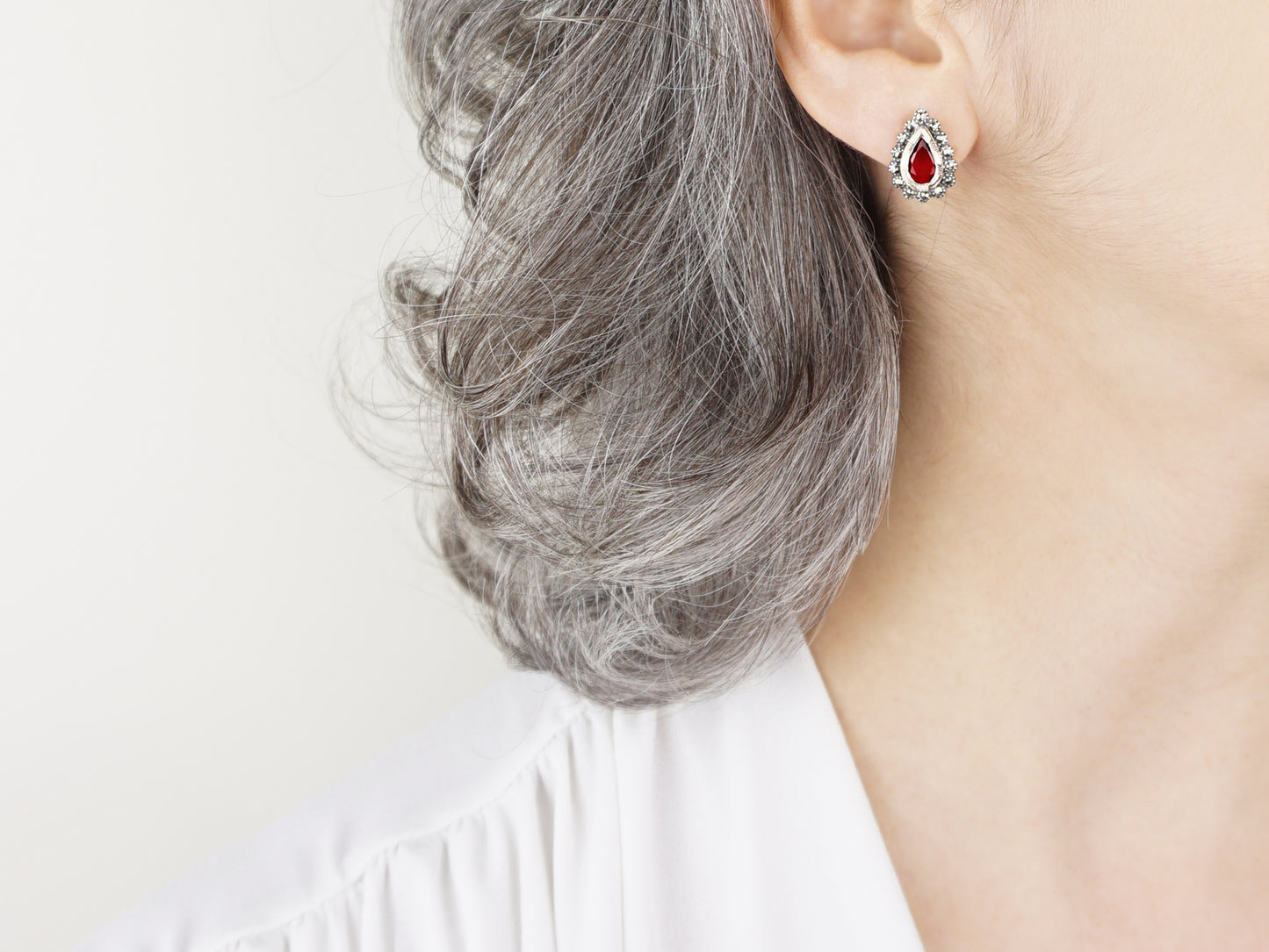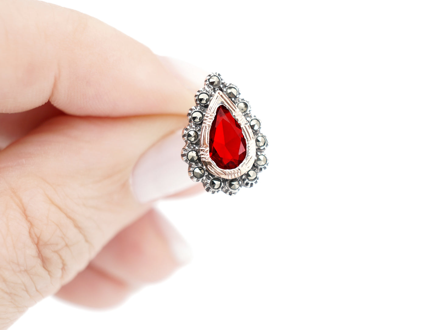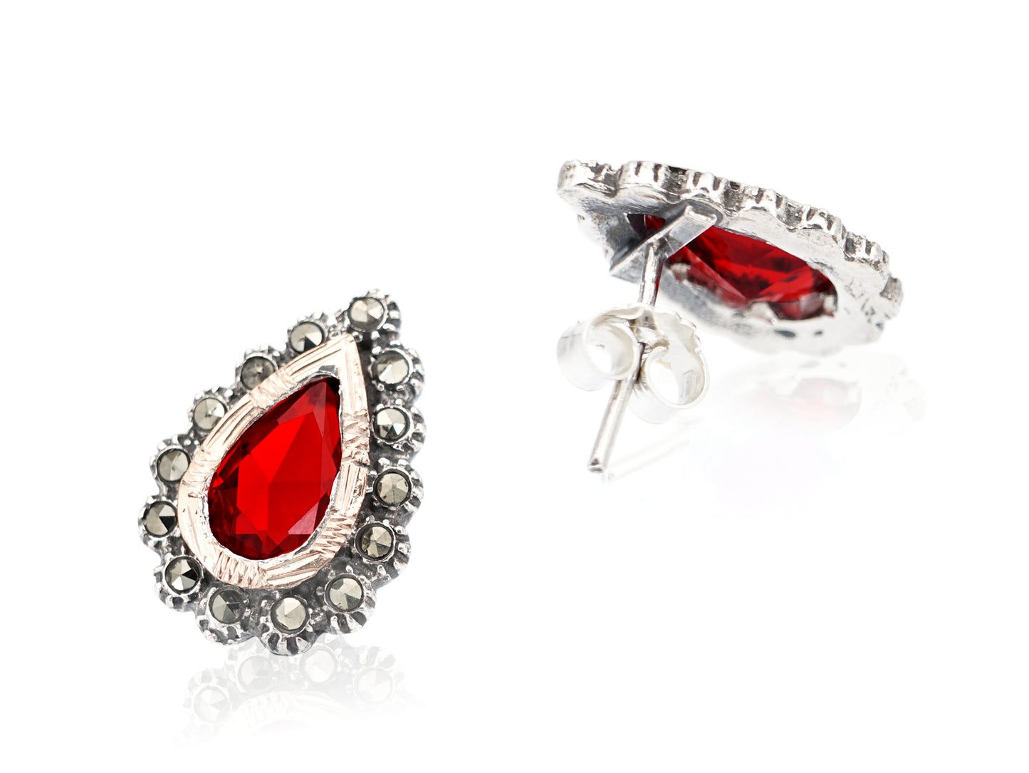 - Model: Marcasites Teardrop Earrings with Red Stone