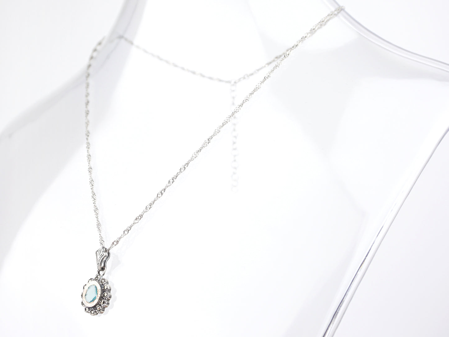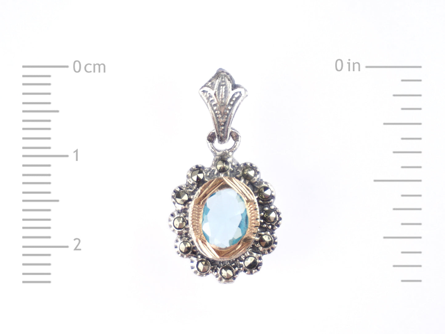 - Model: Oval Marcasites Medal with Aqua Blue Stone
