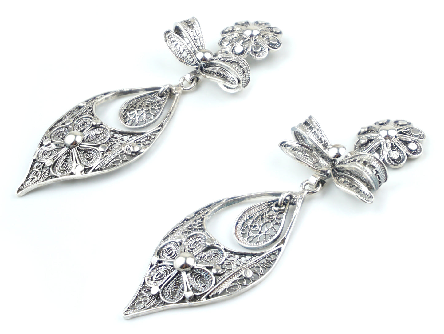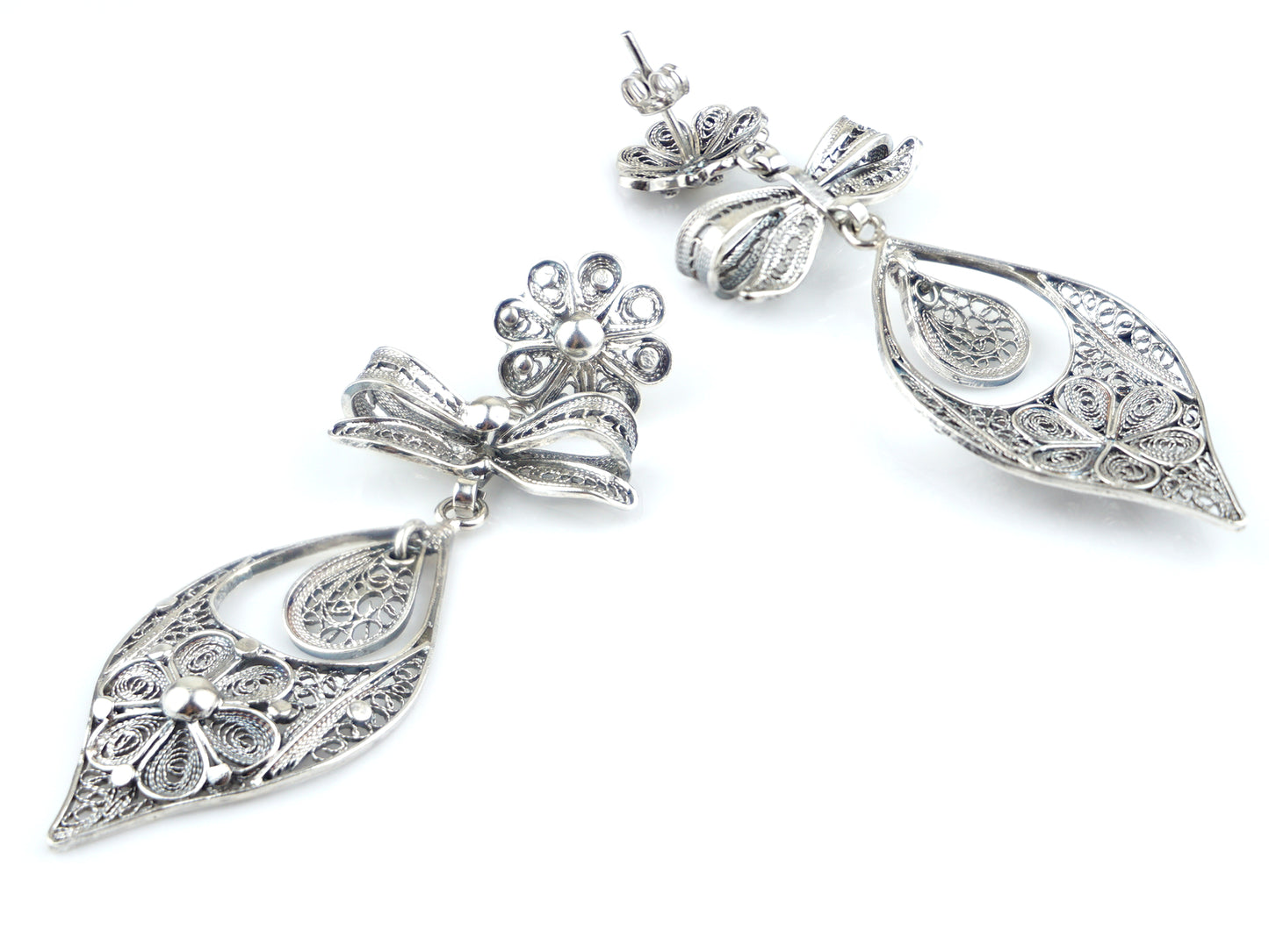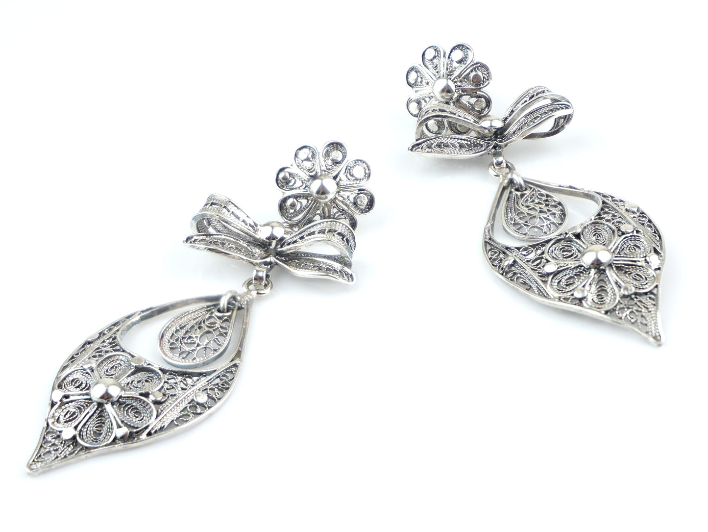 Rich Princess Earrings, Portuguese Filigree, 925 Sterling Silver