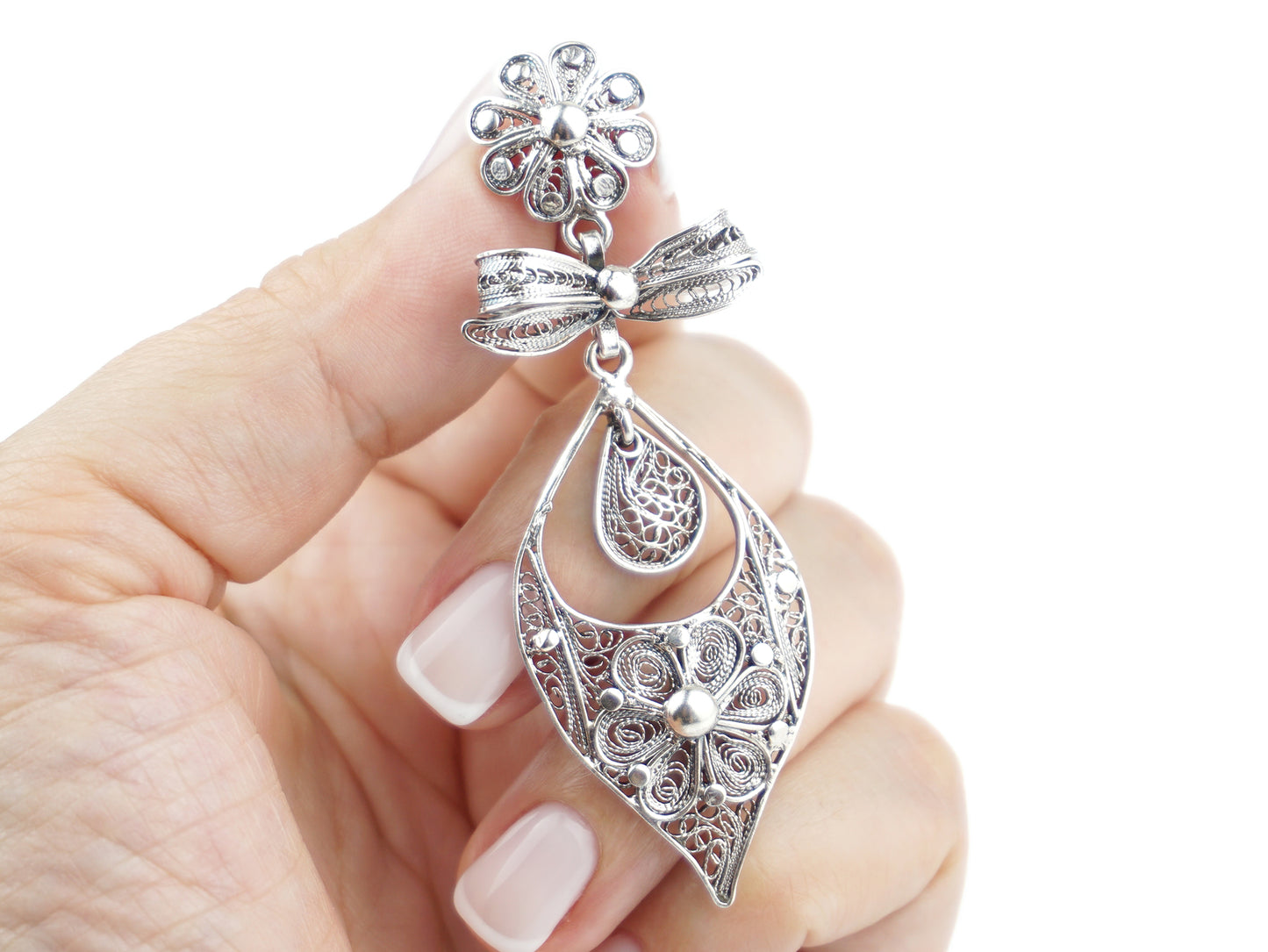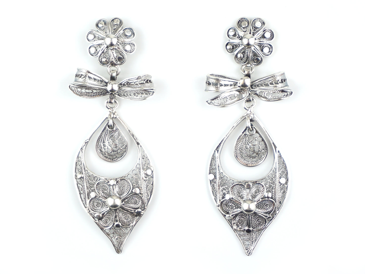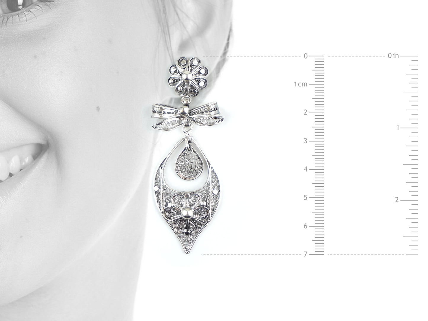 Rich Princess Earrings, Portuguese Filigree, 925 Sterling Silver