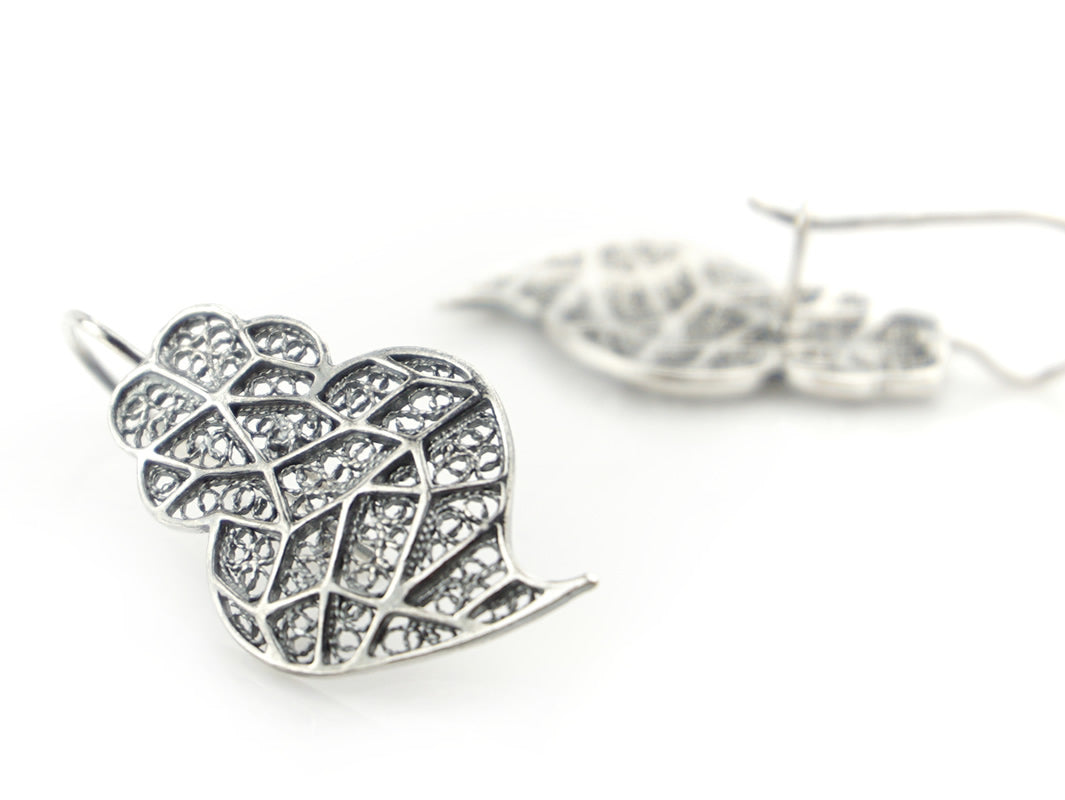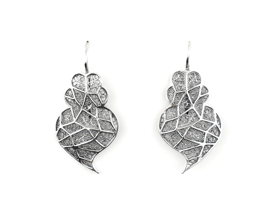 Geometric Viana Heart Earrings, Portuguese Filigree, 925 Sterling Silver