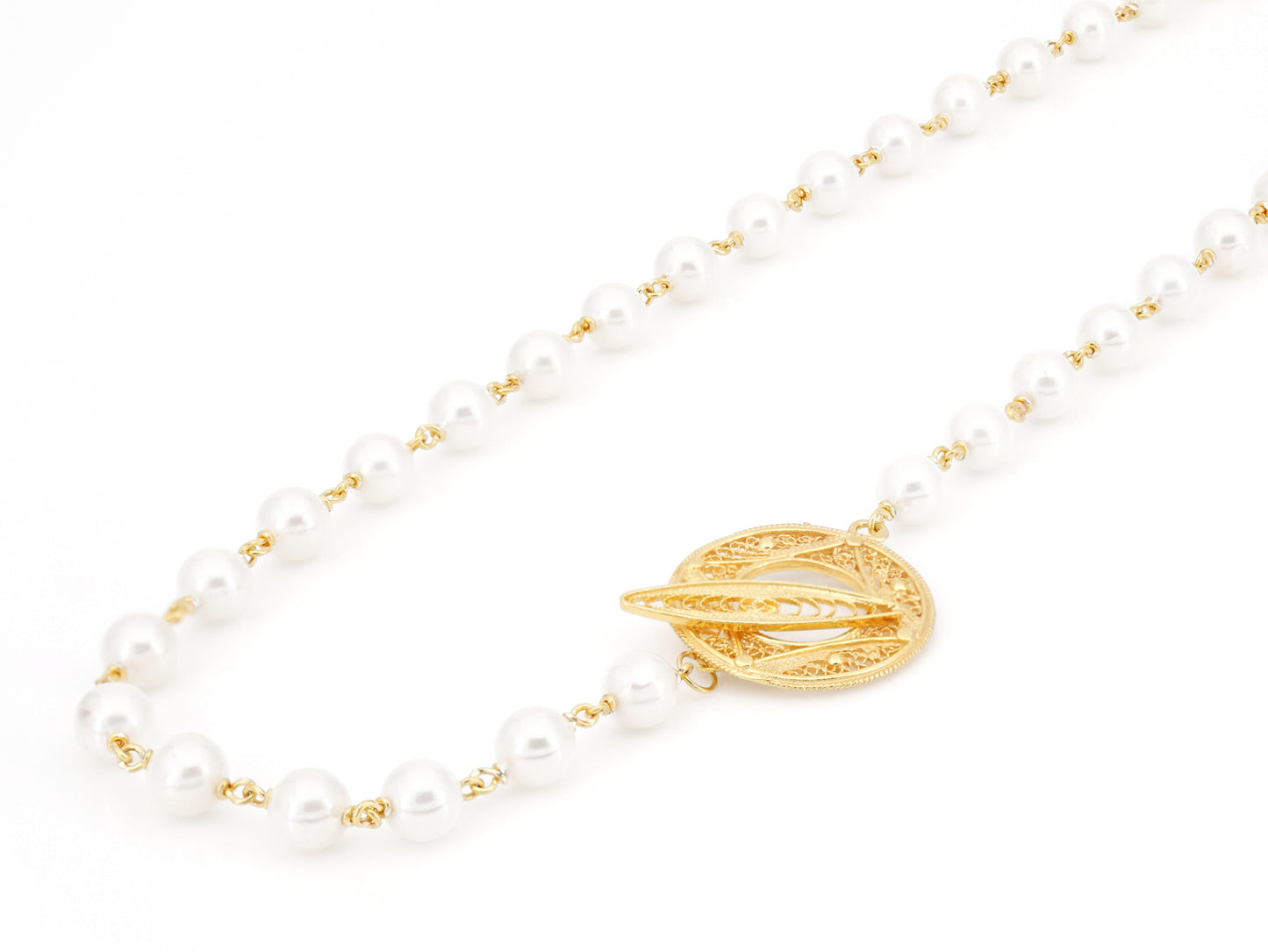 Freshwater Pearls Necklace with Filigree Closure, Portuguese Filigree, Golden 925 Sterling Silver
