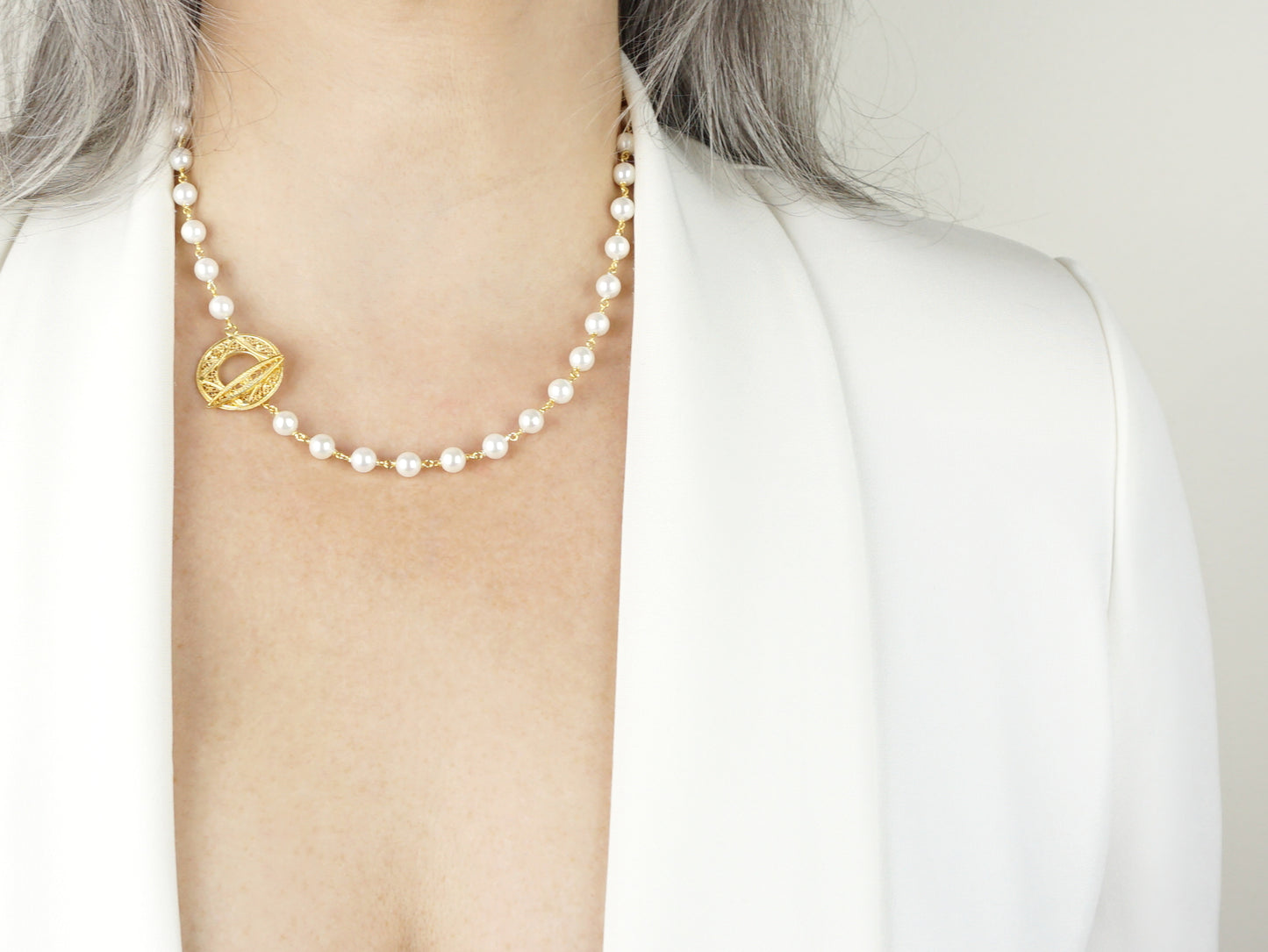 - Model: Freshwater Pearls Necklace with Filigree Toggle Closure