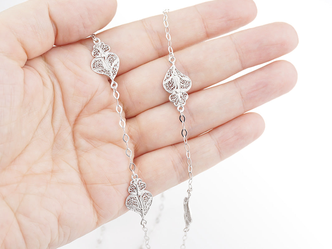 Ten Viana Hearts Necklace, Portuguese Filigree, 925 Sterling Silver