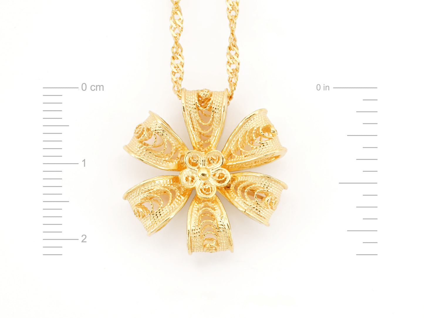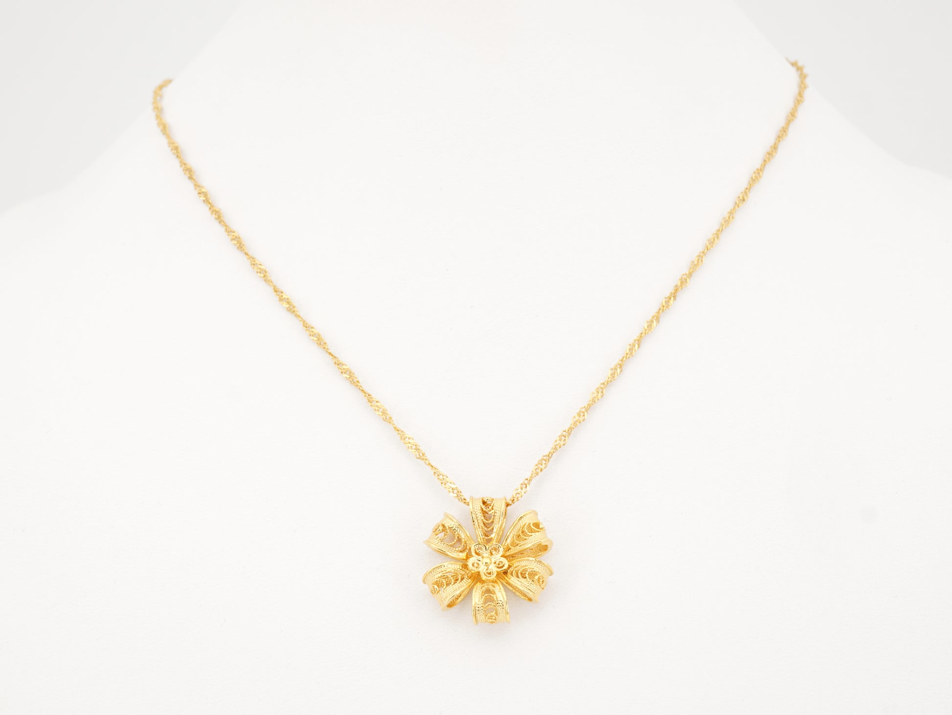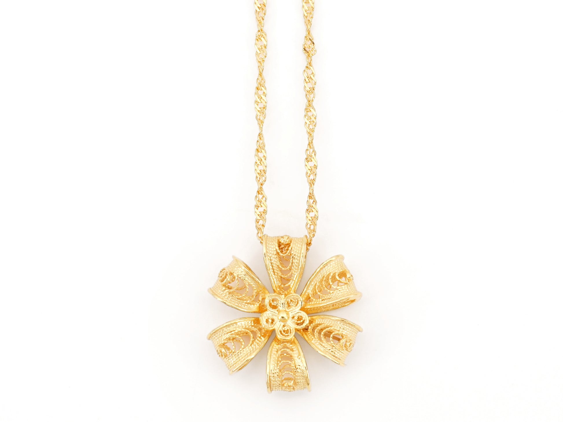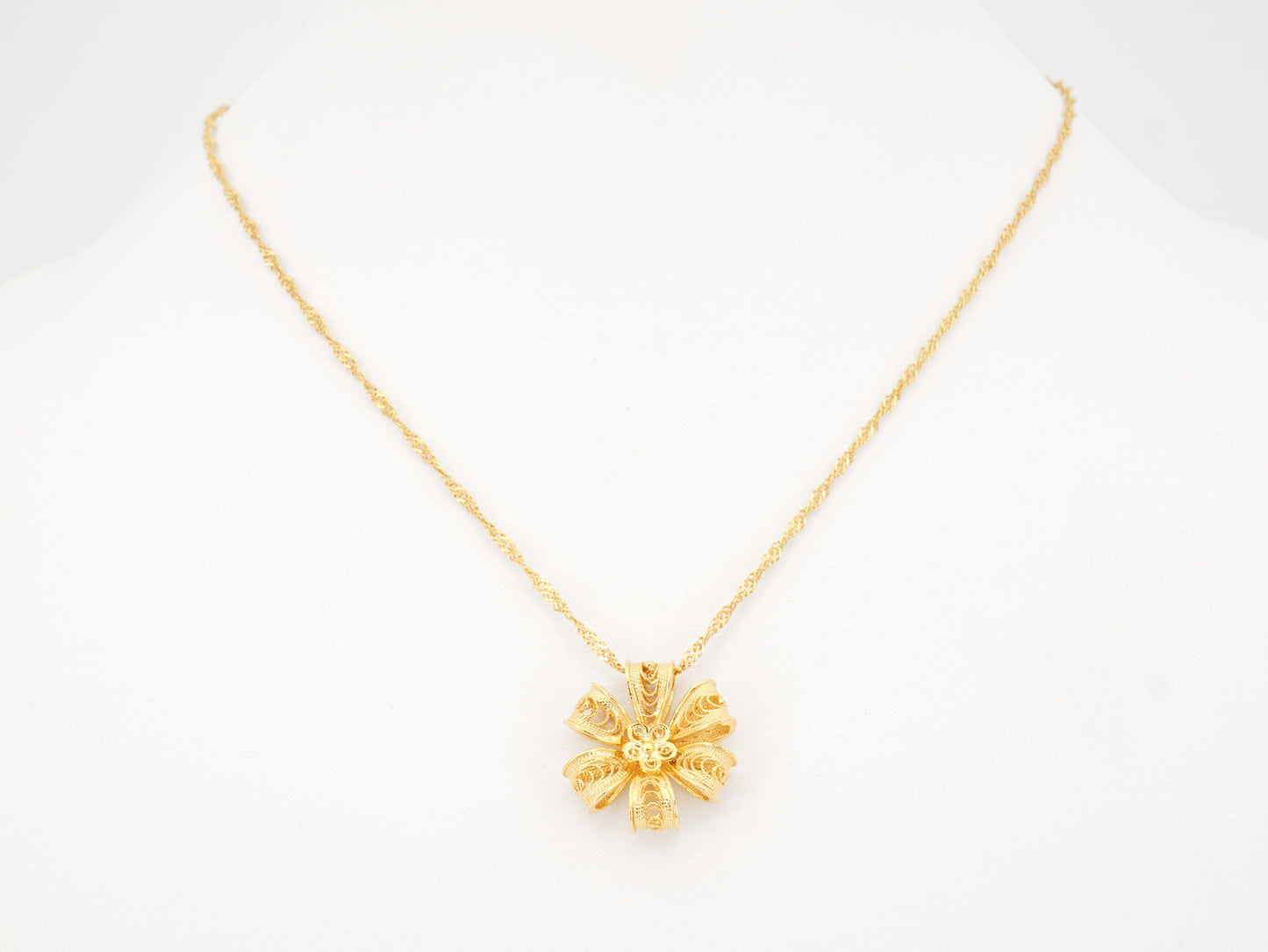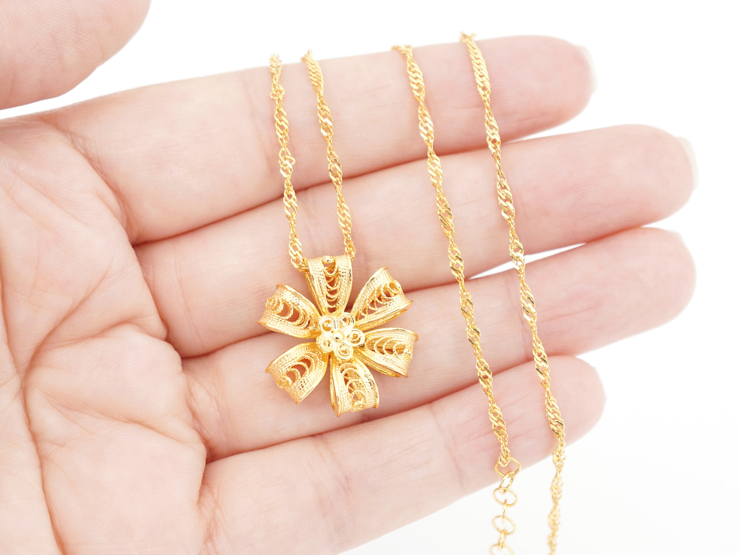 Necklace with Rich Flower of Six Petals, Portuguese Filigree, Golden 925 Sterling Silver