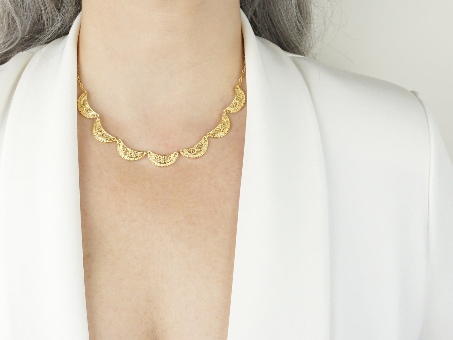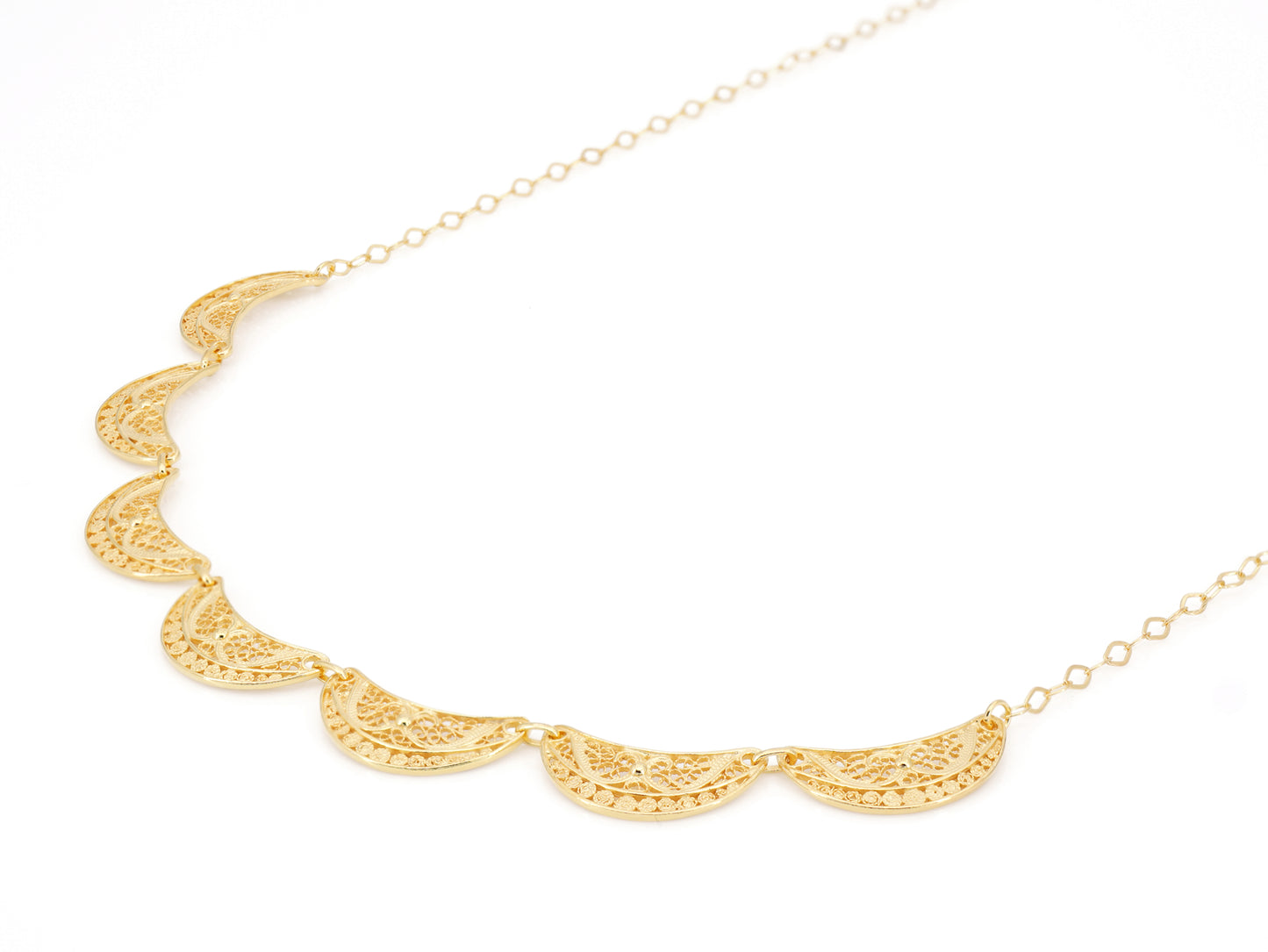 Seven Segments Necklace, Portuguese Filigree, Golden 925 Sterling Silver