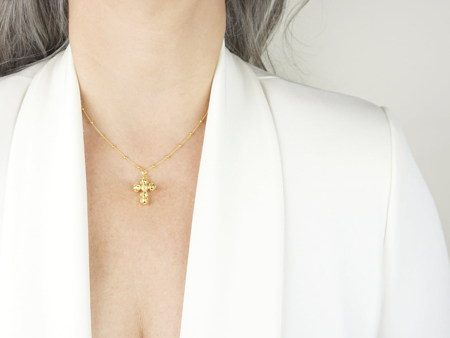- Model: Short "Spheres" Necklace with Small Viana Beads Cross Pendant