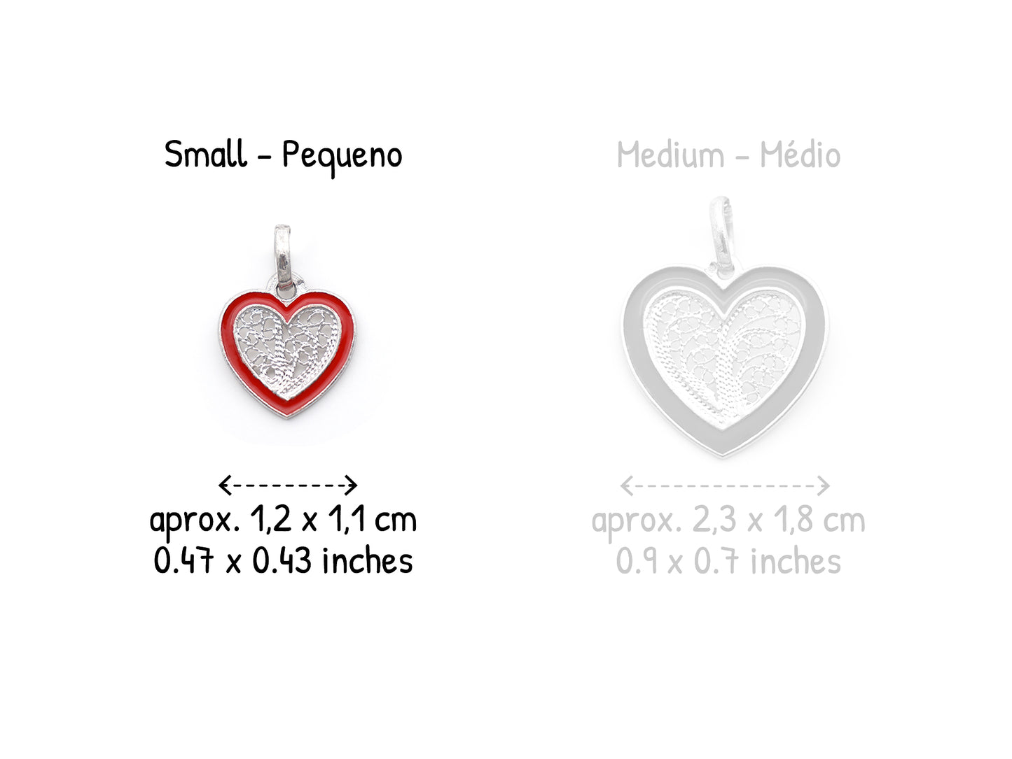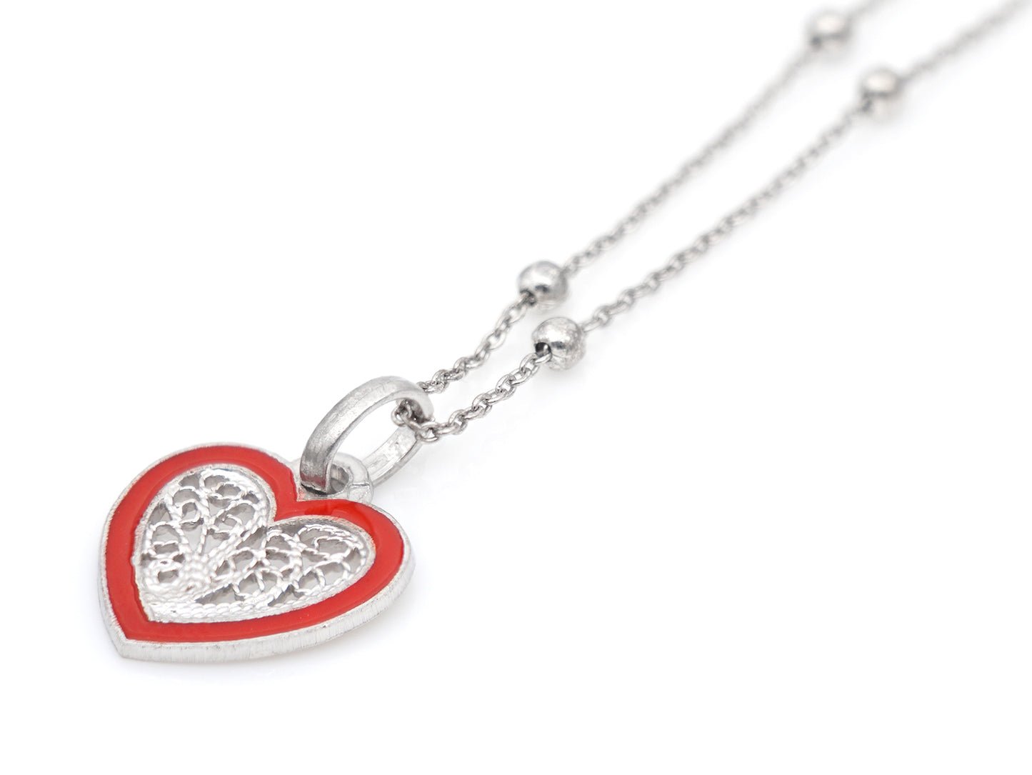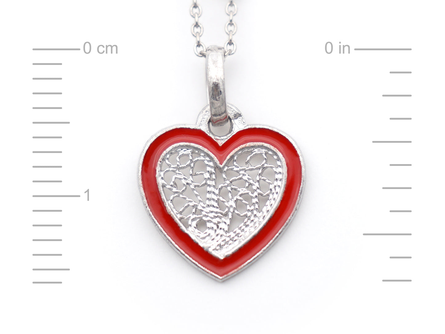 Necklace Small Heart with Red Enamel, Portuguese Filigree, 925 Sterling Silver