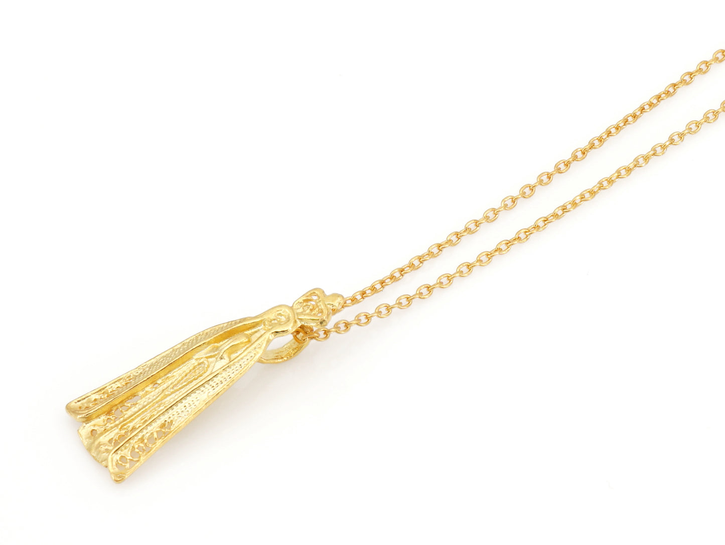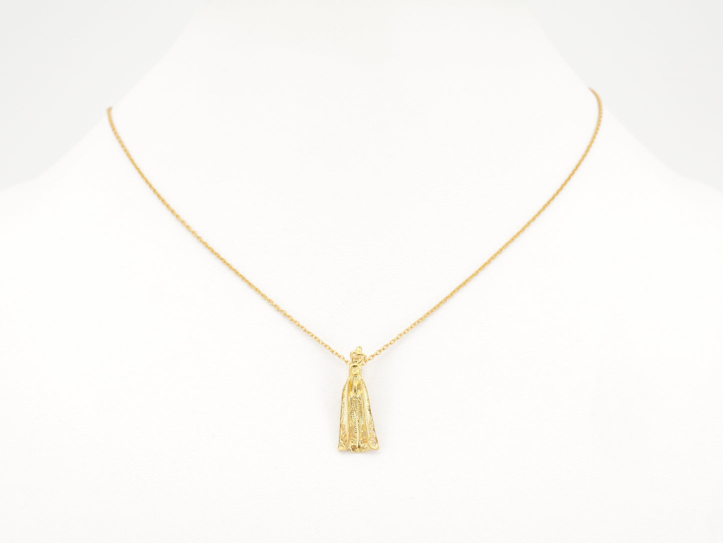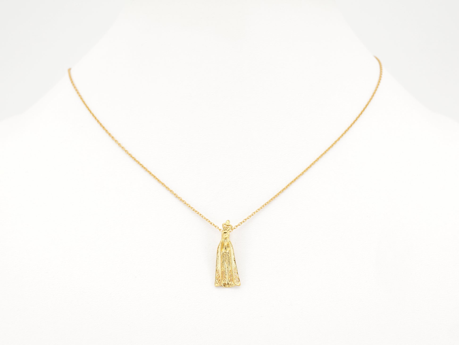 Necklace with Extra Small Our Lady of Fatima Pendant, Portuguese Filigree, Golden 925 Sterling Silver