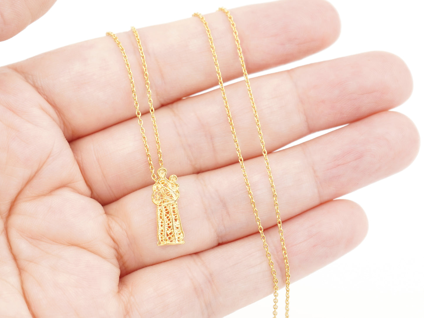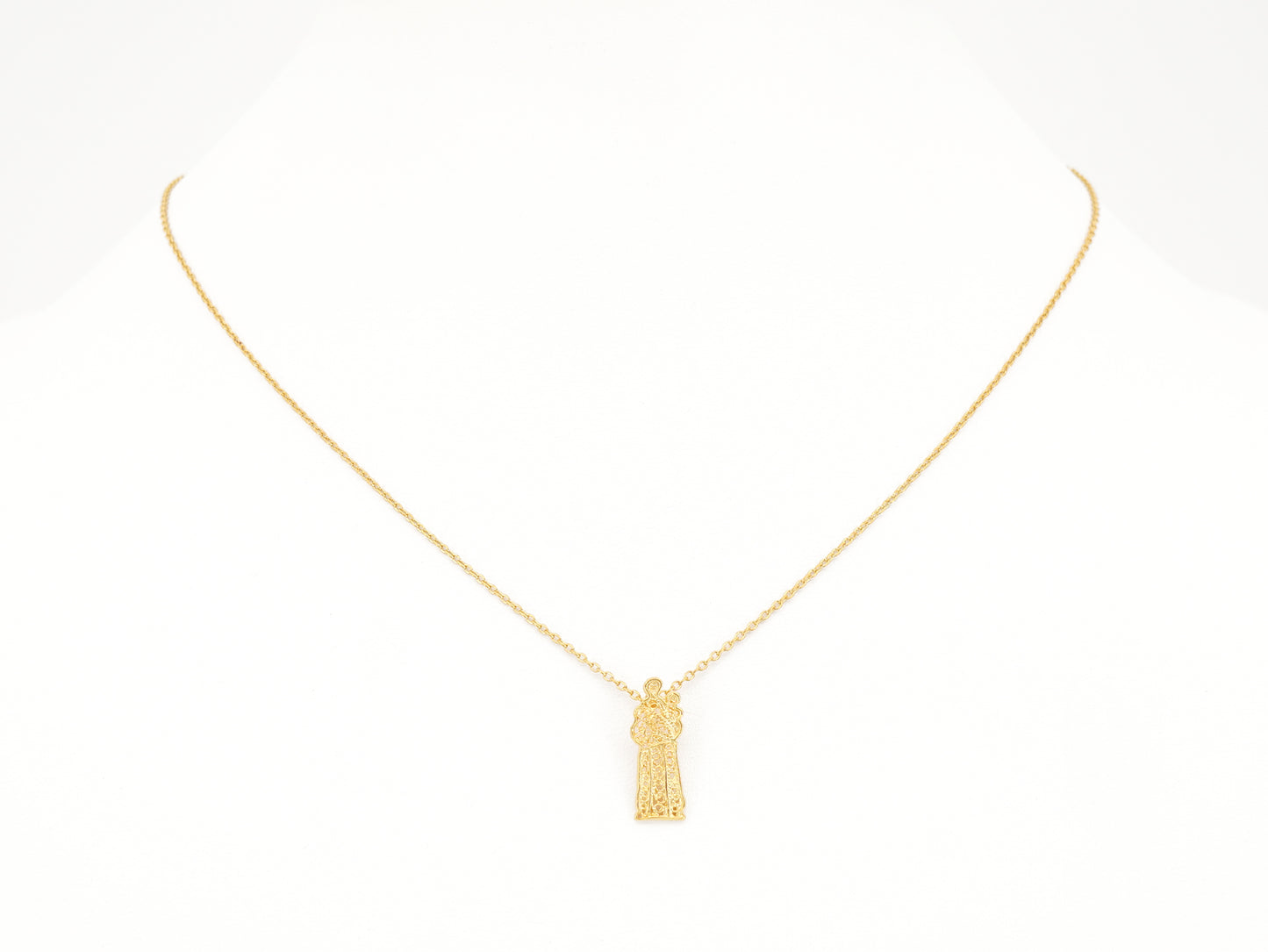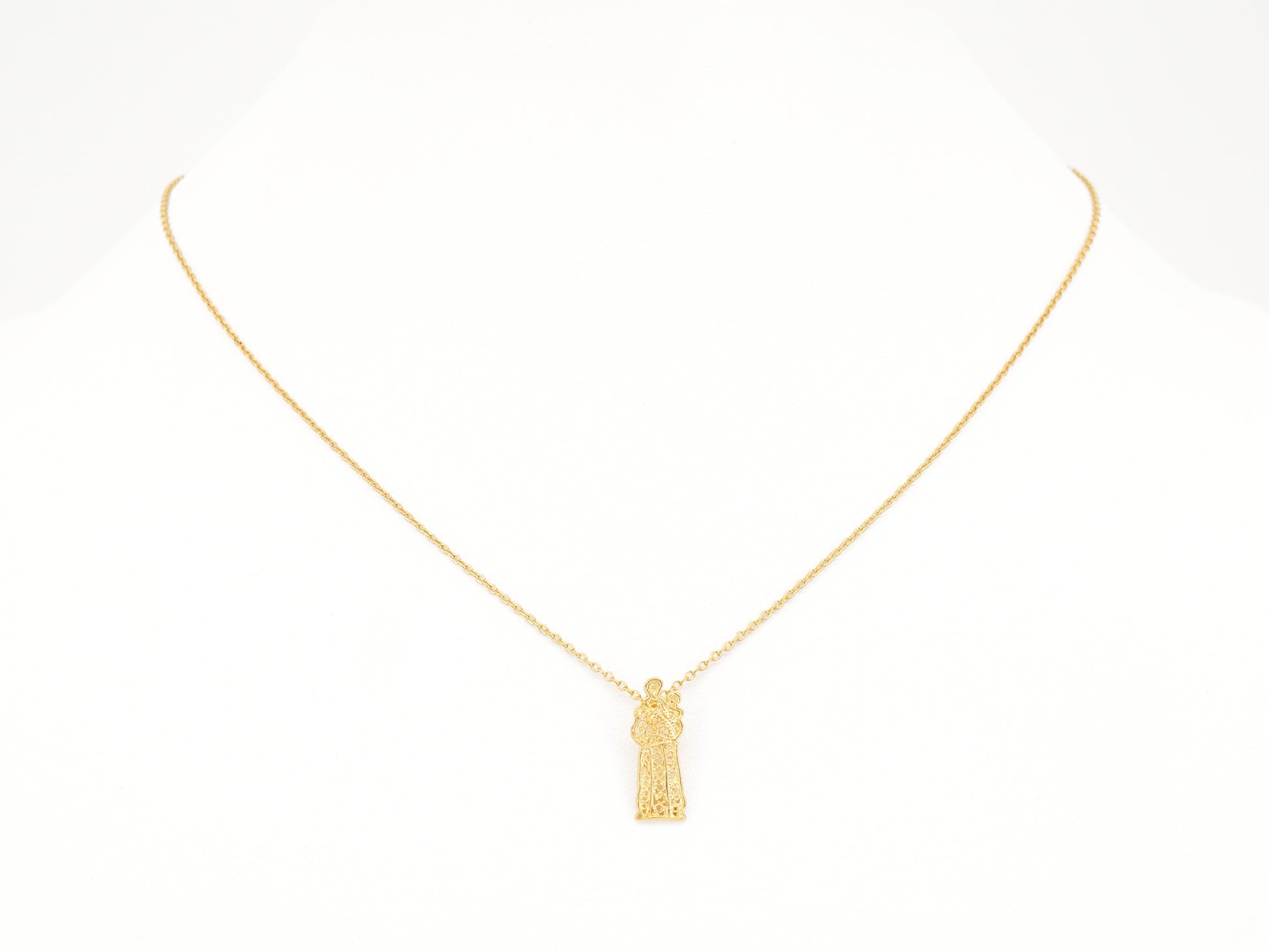 Necklace with Extra Small Santo António Pendant, Portuguese Filigree, Golden 925 Sterling Silver