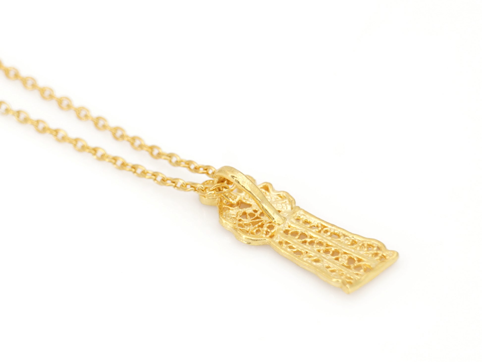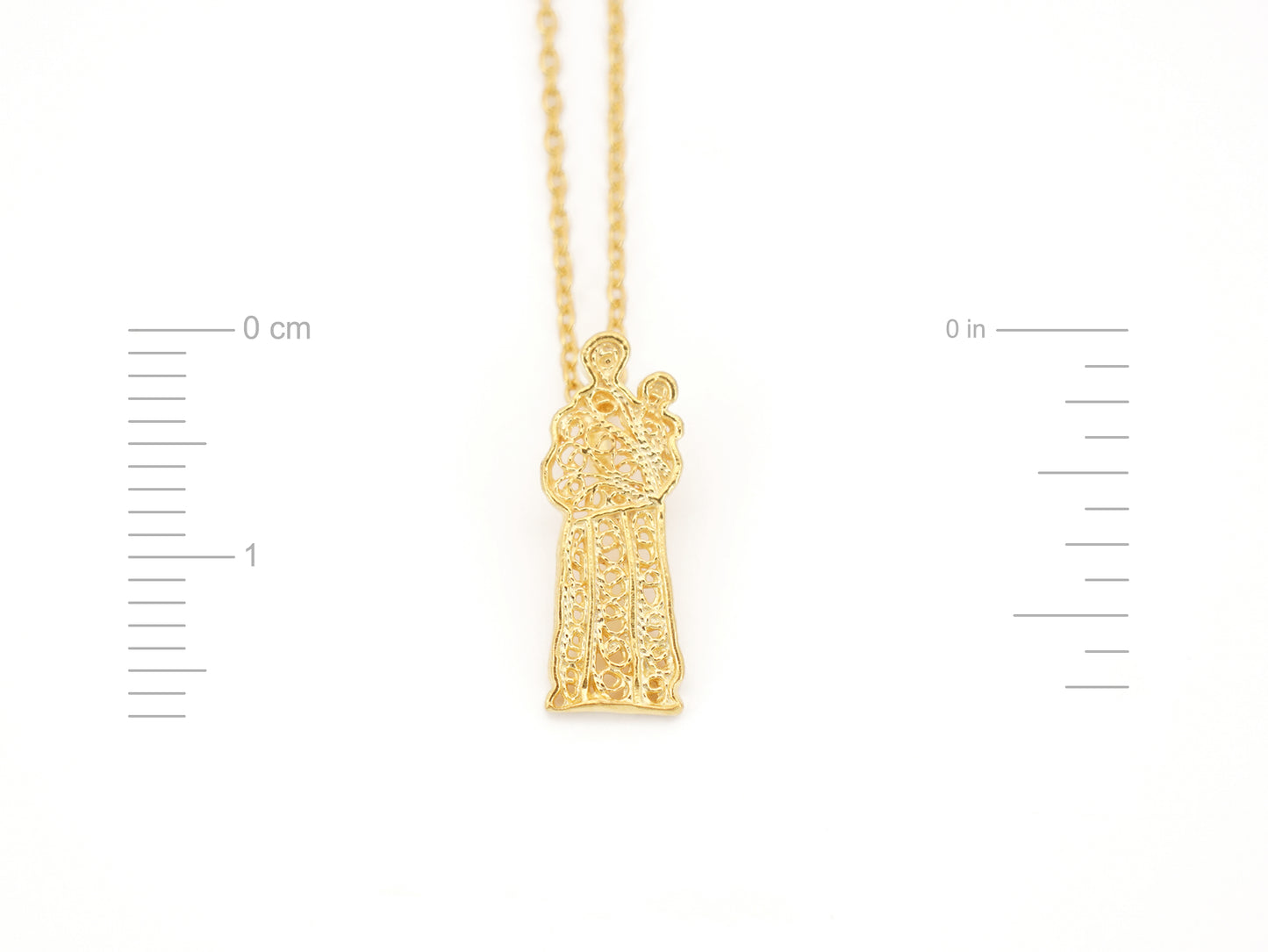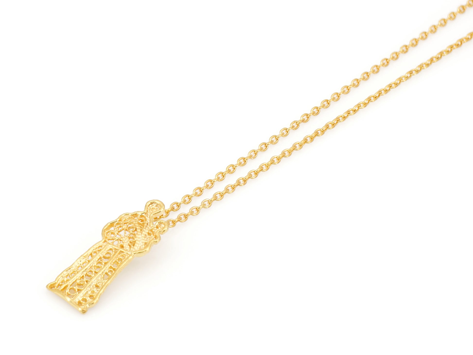 Necklace with Extra Small Santo António Pendant, Portuguese Filigree, Golden 925 Sterling Silver