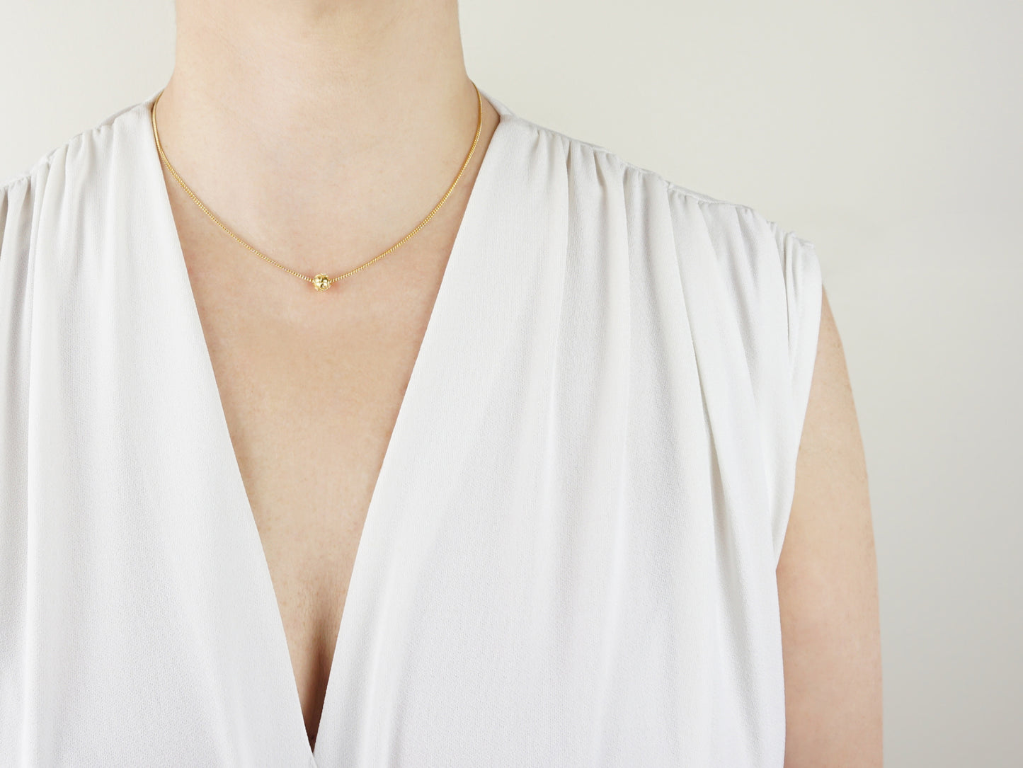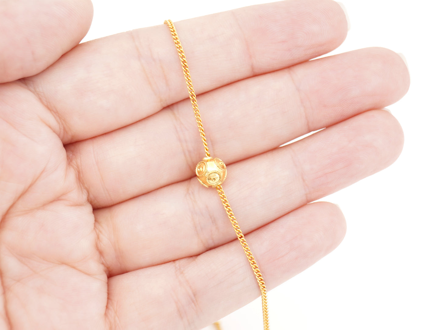 Elegant Necklace with small-sized Viana Bead. Portuguese Filigree, crafted in Portugal in Golden 925 Sterling Silver.