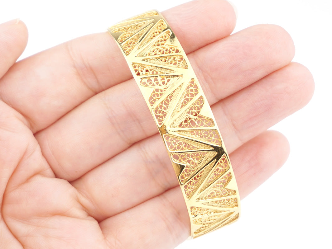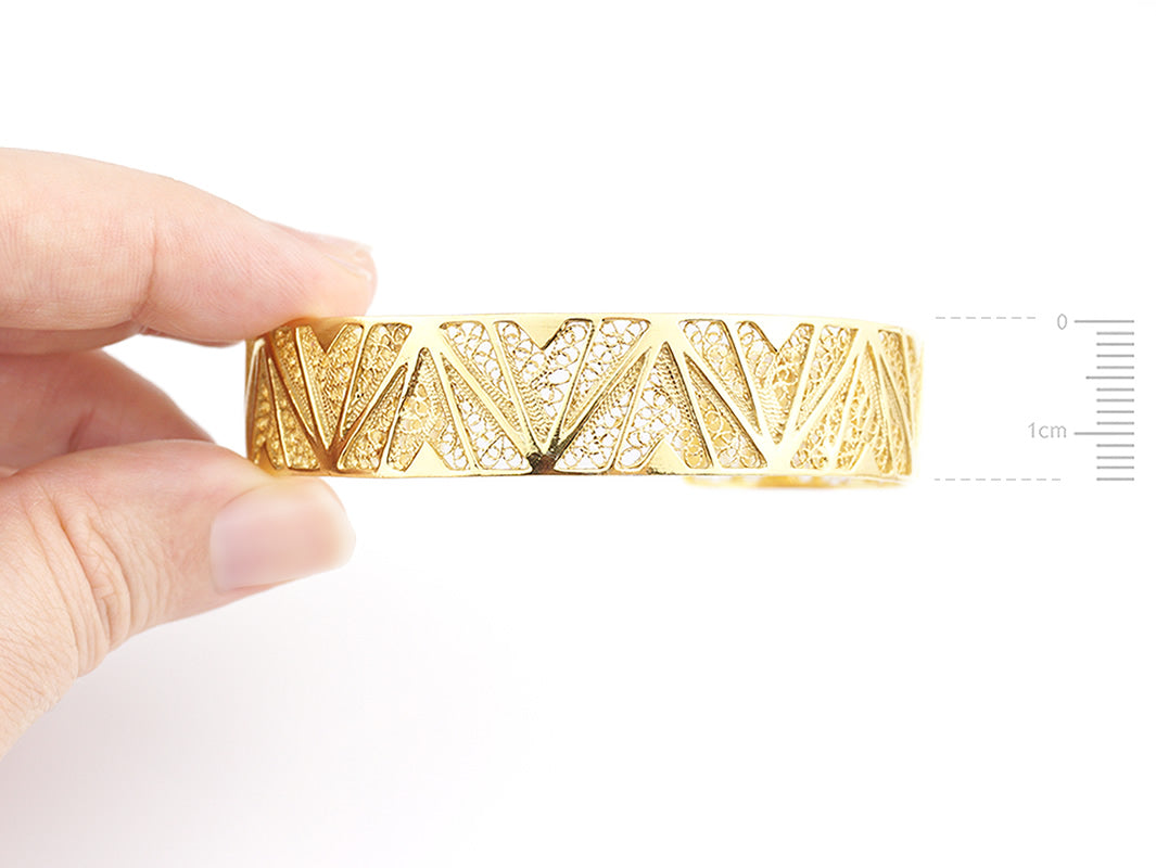 Geometric Cuff Bracelet, Portuguese Filigree, Golden 925 Sterling Silver