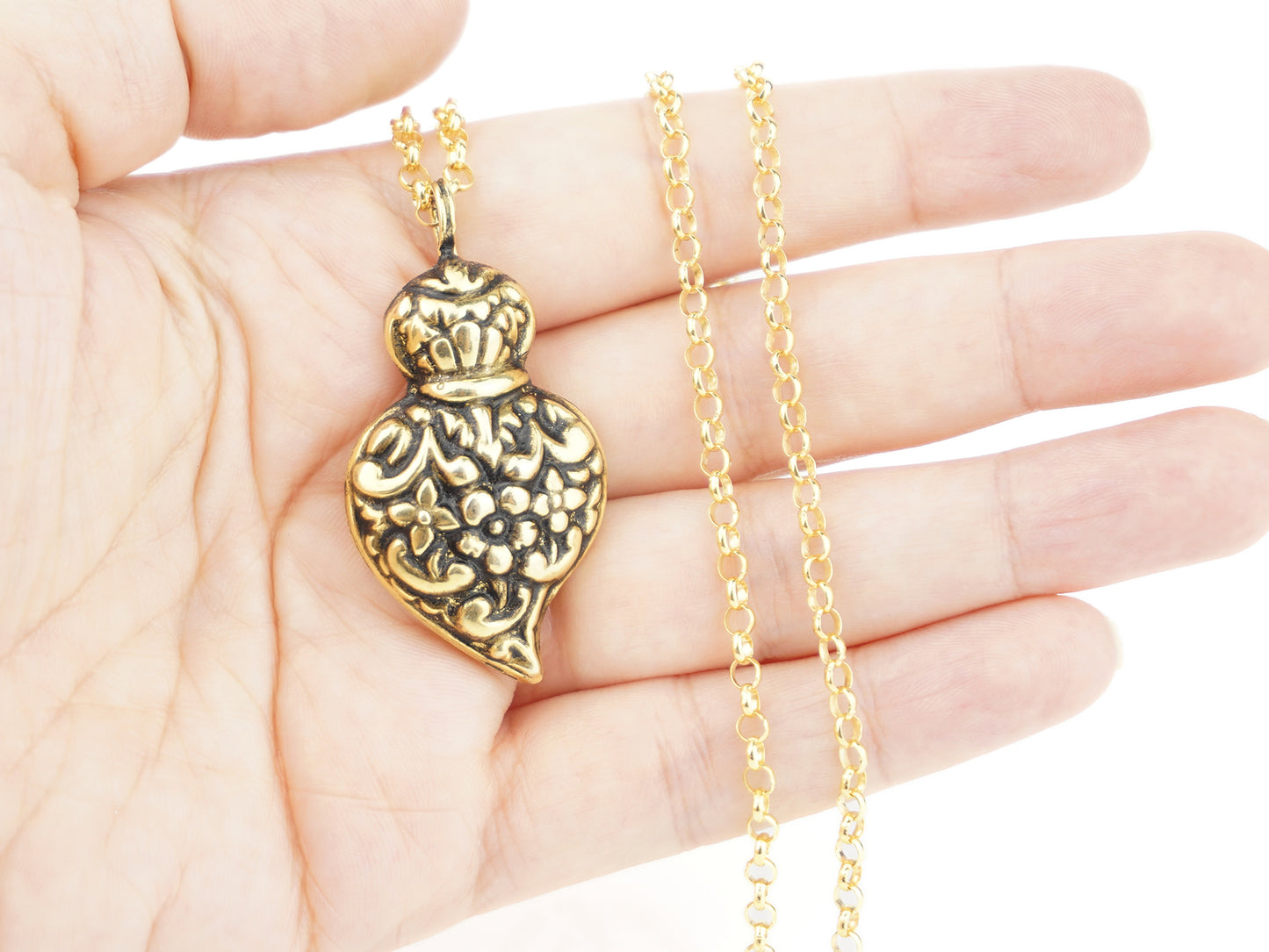 Baroque Jewelry is known for its chunky aesthetic and impressive visual impact, but it is actually surprisingly light. Each piece is entirely molded by hand, using bronze dies that date back to the late 18th and early 19th centuries, using ancestral techniques passed down from generation to generation.